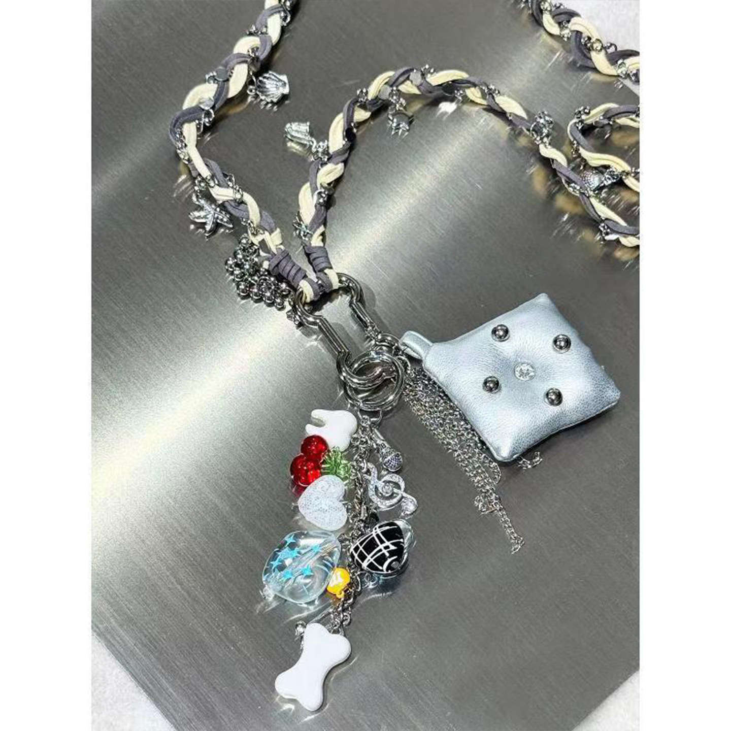 オリジナル手織りファッショナブルで多用途なニッチデザインパンクロングネックレスレディースセーターチェーンバッグハンギングチェーントレンディ