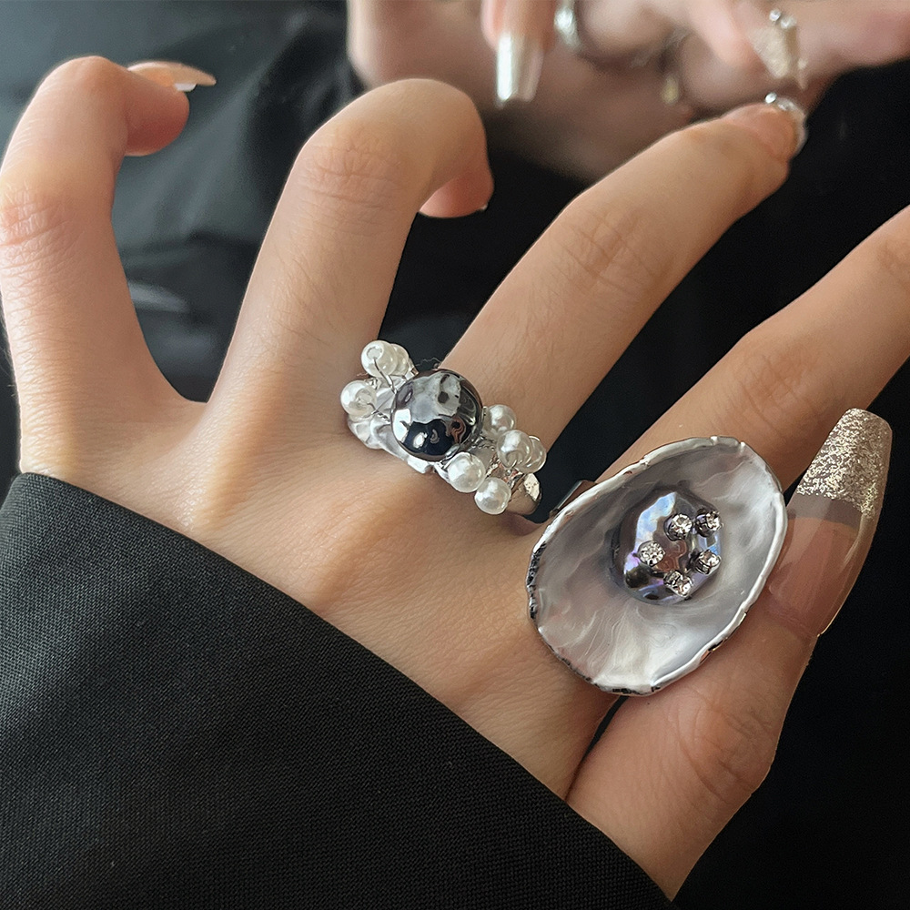大衆デザイン中性甘いクールなビーズにドリルリングins冷たい風シンプルな高級開口指リング指戒