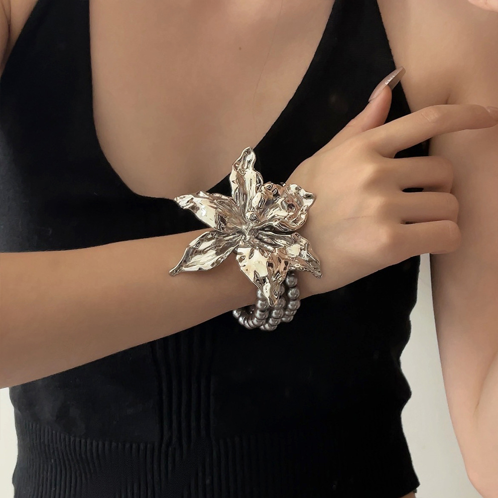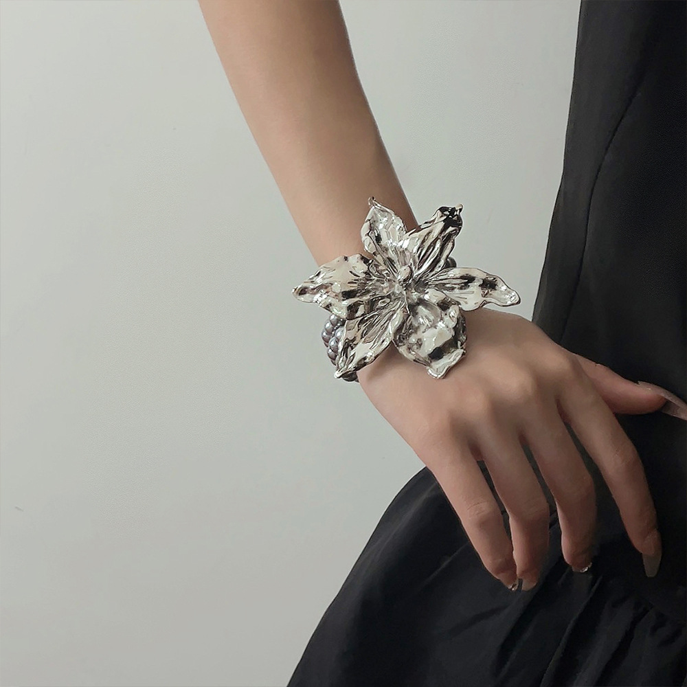 レトロな誇張の中古風の大衆の設計の開口のブレスレットの女性の重工のパンクの風の百合の金属感の編み物の腕の輪