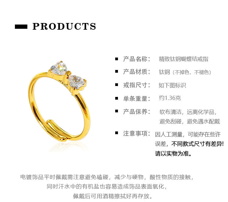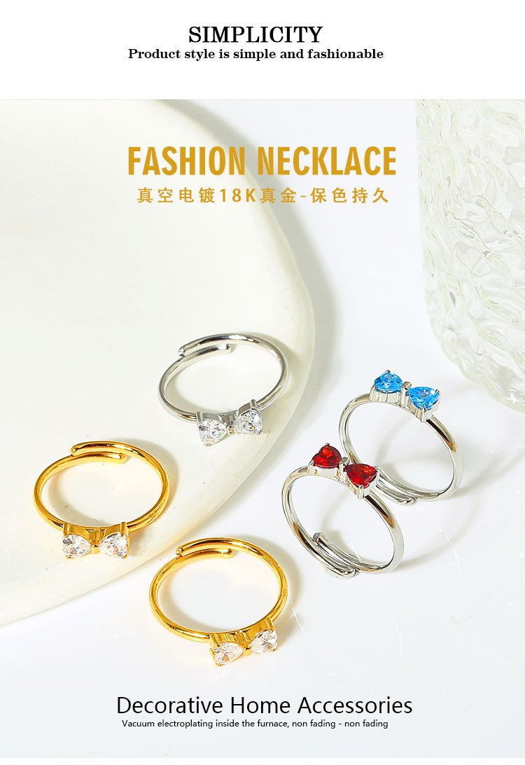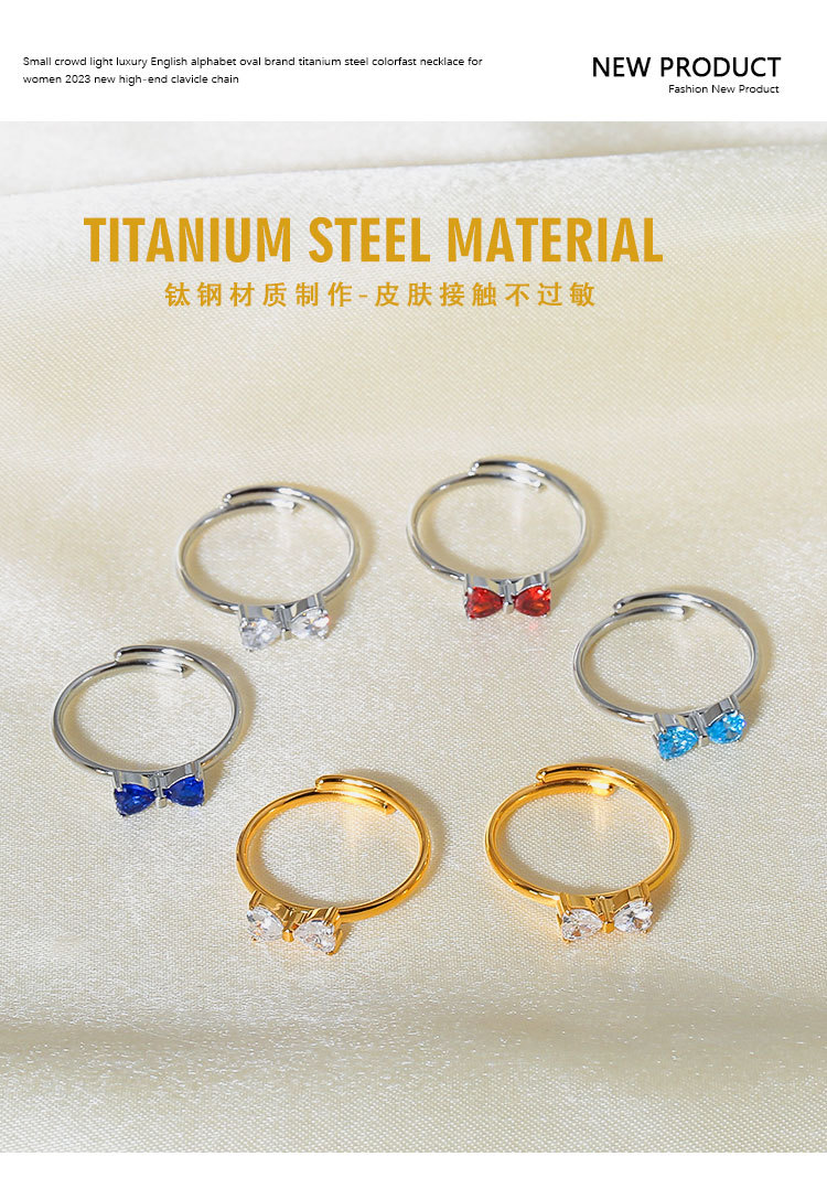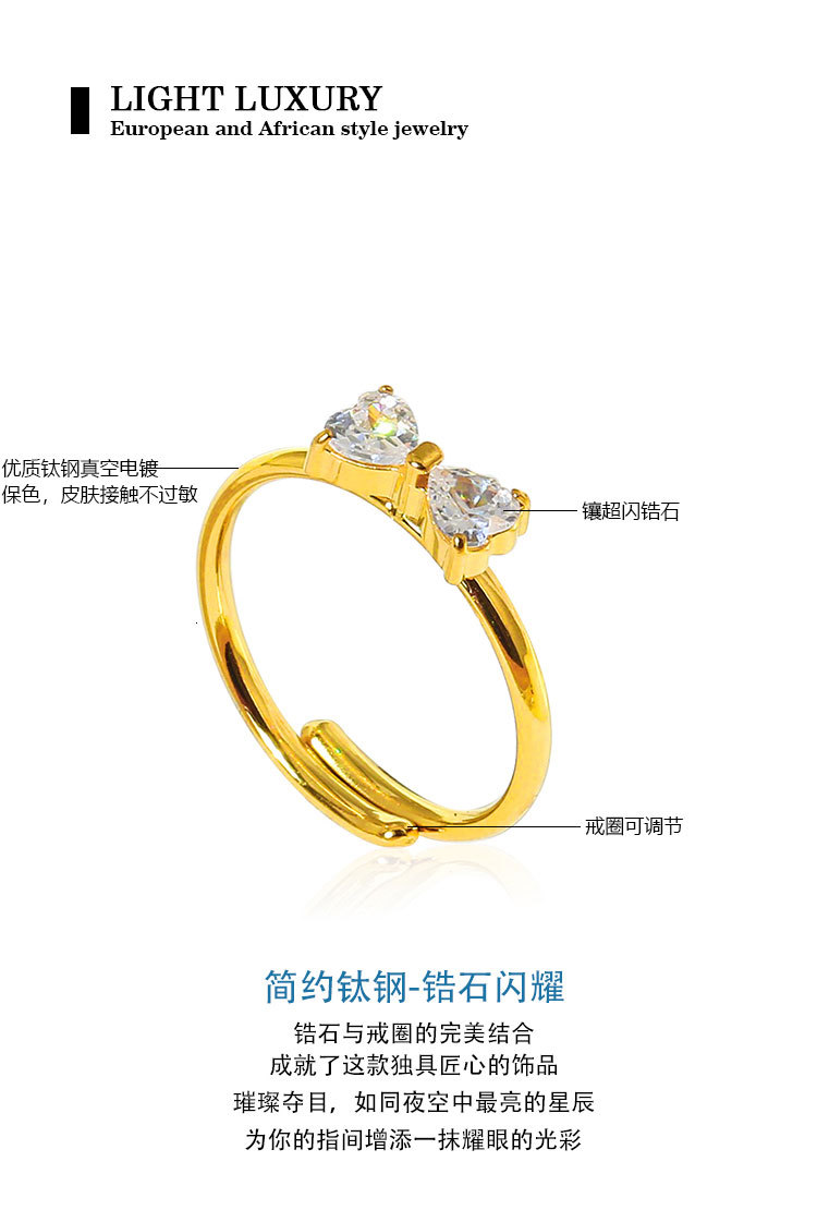 クロスボーダーの金色のチタン鋼の蝶結びの指輪の女性の大衆の高級な軽豪華さは色の宝の指輪の開口部を落とさないで調節できます。