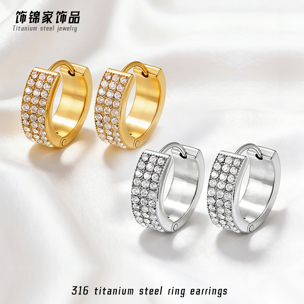 チタン鋼ゴールドダブルCヨーロピアンスタイルフルダイヤモンドリングレディースジルコンイヤリングステンレスイヤリング夏の軽やかな高級感