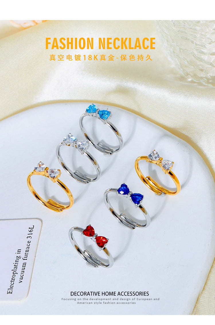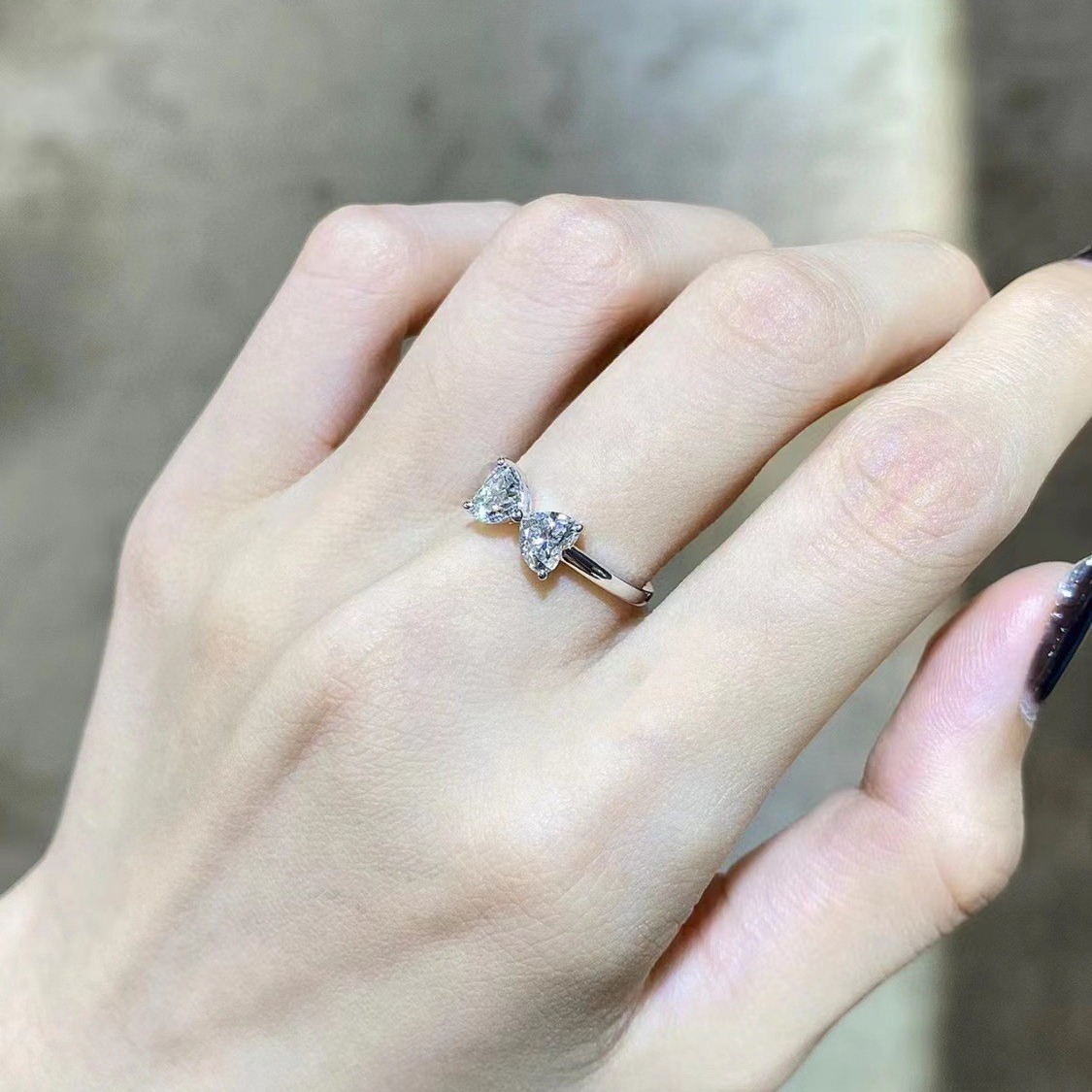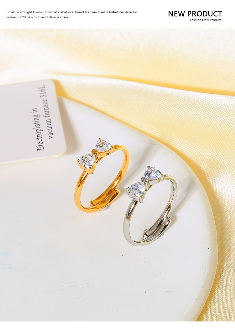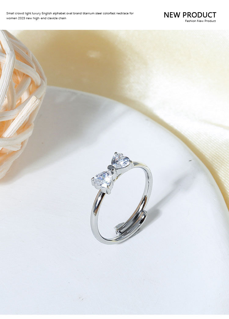 日韓ファッション蝶結び指輪女性ins風シンプルジルコン愛指輪アクセサリークロスボーダー起爆金