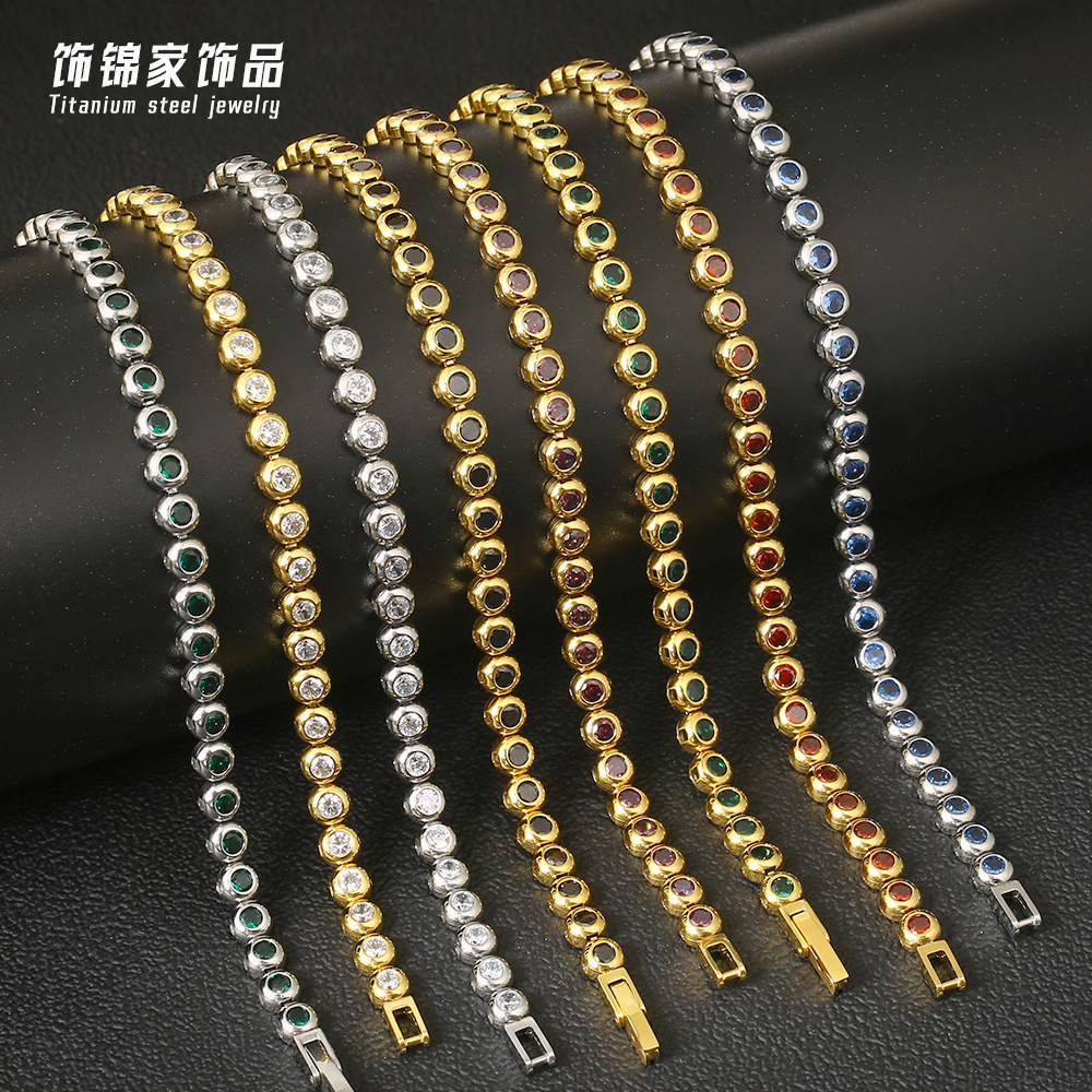 钛钢彩色满钻锆石网球手链绿色轻奢高级感欧美嘻哈不锈钢手链欧美