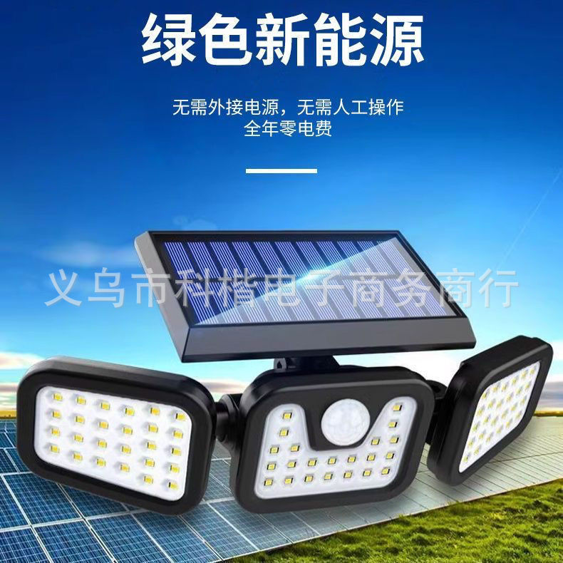 国境を越えた太陽灯は折り畳み可能な三ヘッドライト家庭用庭園の壁灯人体誘導屋外照明車庫の街灯