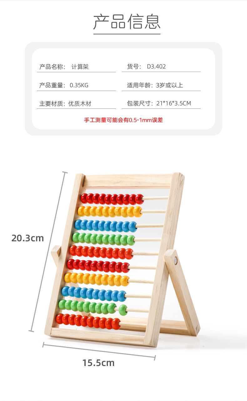木制计算架小学生数学10档幼儿童珠算架算盘加减法算术数数棒教具