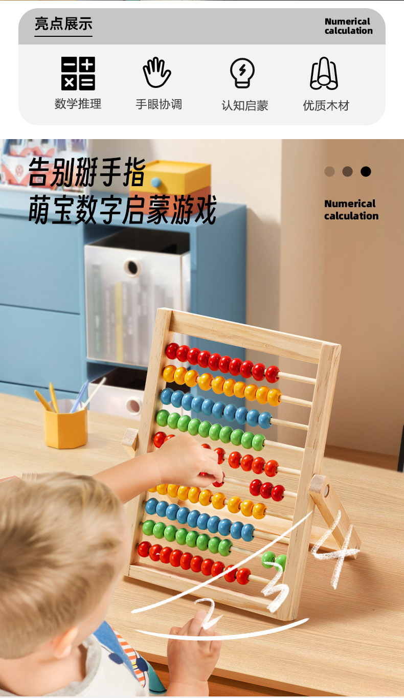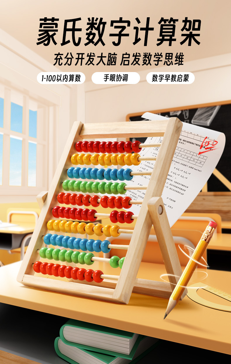 オーダーメイド木製計算棚幼児小学生数学10段児童珠算台そろばん加減算算数教具