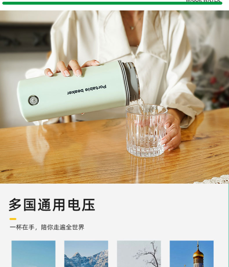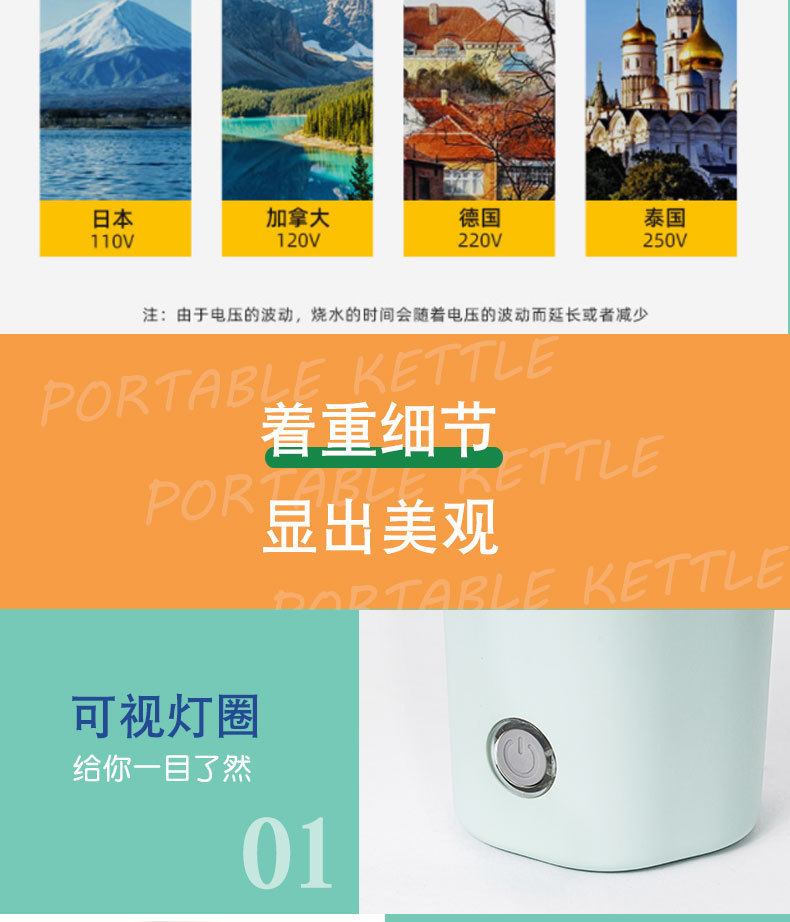 家用电压110V-240V,烧水大约5分钟,快速烧水。(适合出差,旅行,办公,居家)