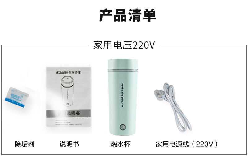 商品名称:便携式电热杯(家用/车载)