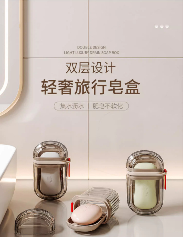 旅行便携香皂盒新款轻奢高级旅行香皂盒带盖双层密封沥水香皂盒