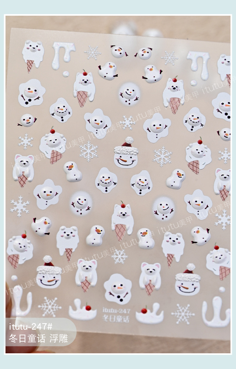 itutu新款圣诞浮雕美甲贴纸烫金雪花圣诞树星星蝴蝶结指甲装饰436