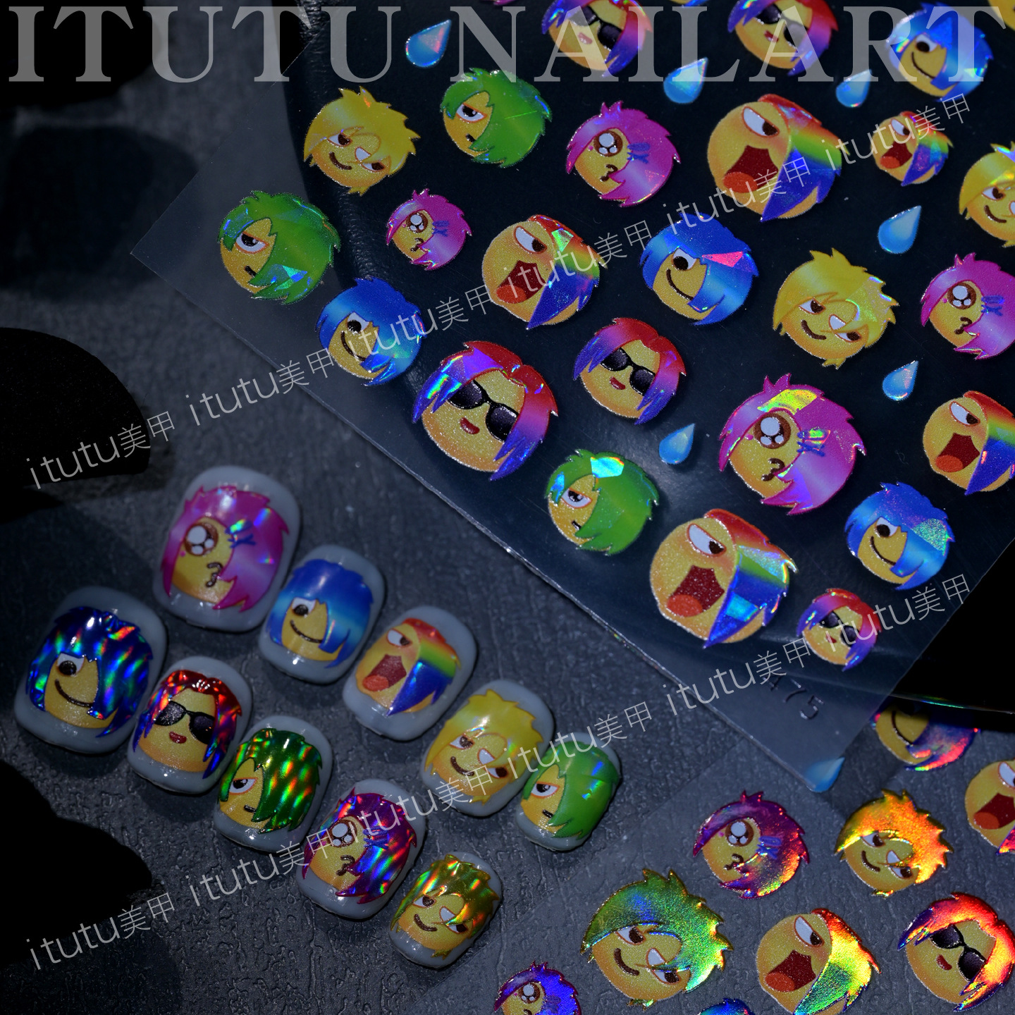 新款杀马特卡通镭射果冻美甲贴纸贝壳光表情指尖小图案背胶贴474