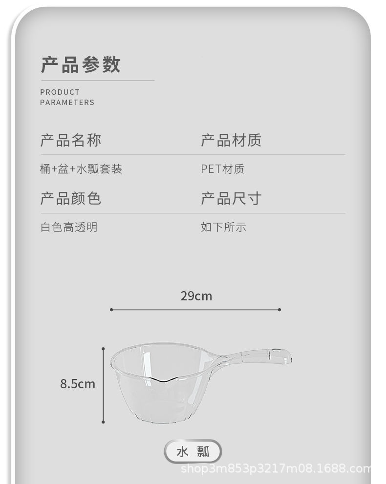 塑料水桶盆勺套装透明水桶洗脸盆水瓢宿舍学生洗浴三件套家用轻奢
