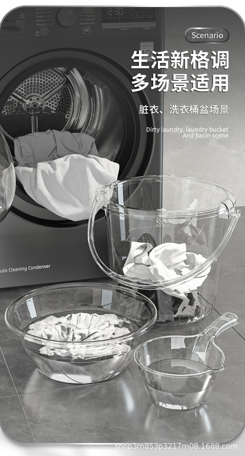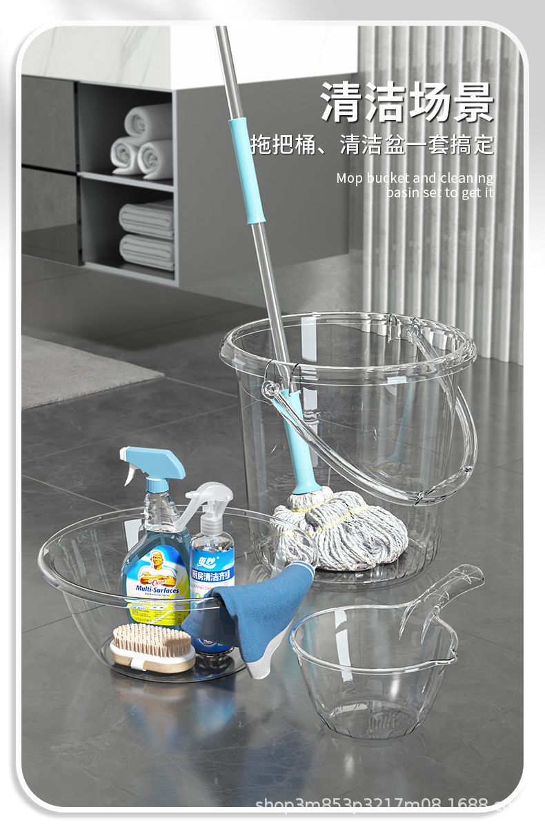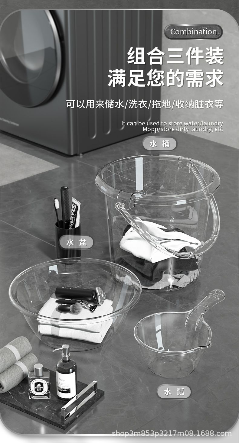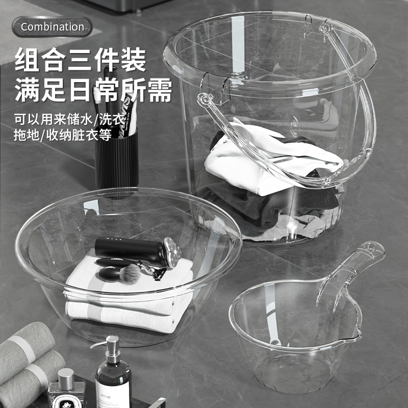 透明バケツ洗面器セット家庭用プラスチック手持ち貯水バケツ寮洗面3点セット