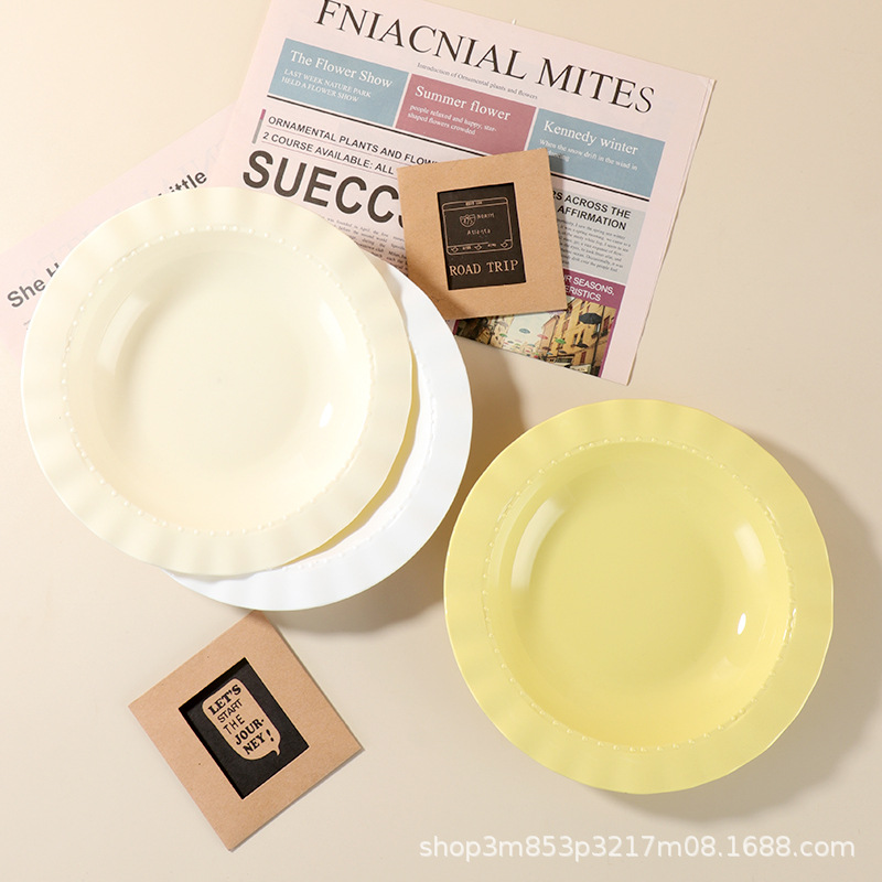 クリームスタイルのプラスチック食器セット家庭用プレートパスタプレート2025新しいボウルと箸プレートボウル組み合わせボウルとプレート