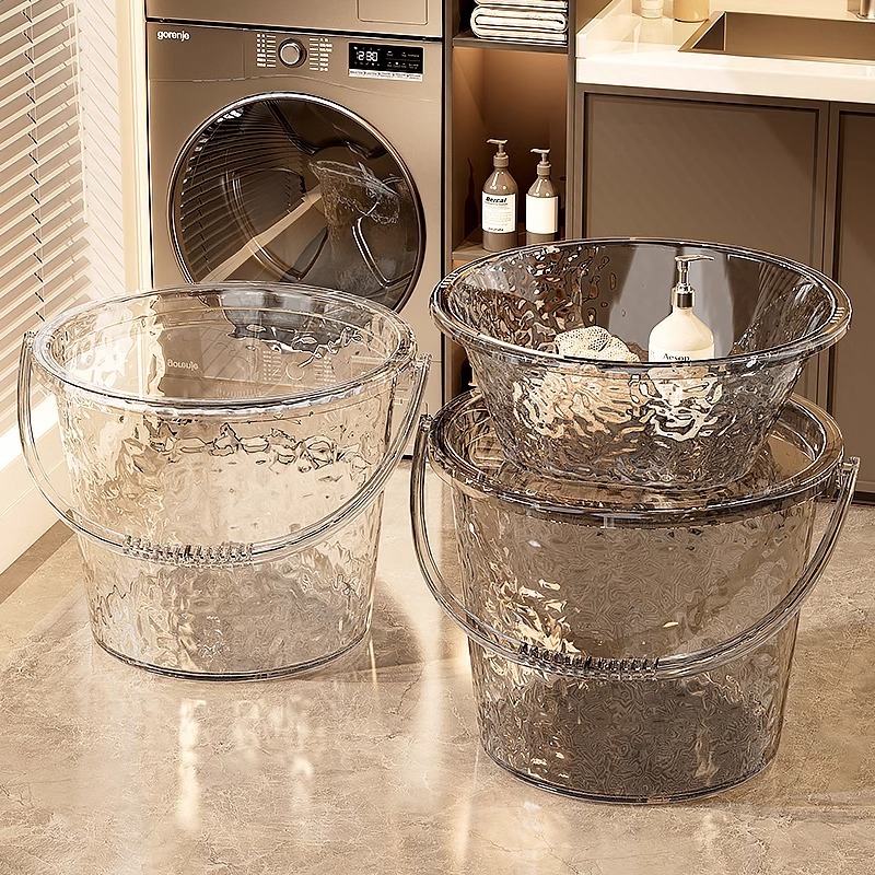 家庭用プラスチックバケツ厚い大きいサイズ贮水バケツ学生寮お风吕洗濯手提げバケツ透明洗濯バケツ