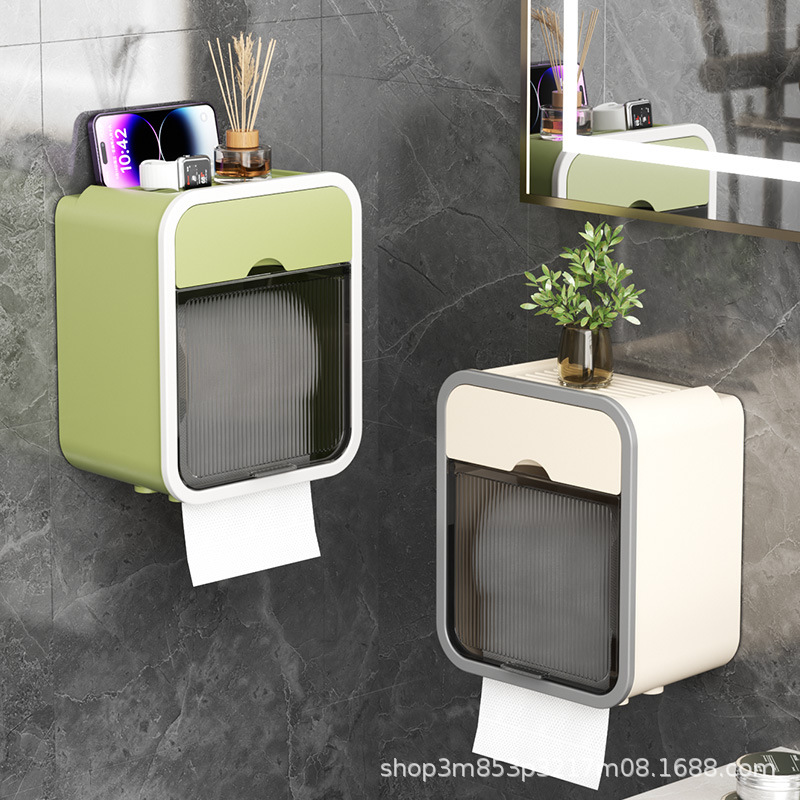 トイレティッシュボックス壁掛け式防水穴なしトレイトイレ紙箱クリエイティブラック