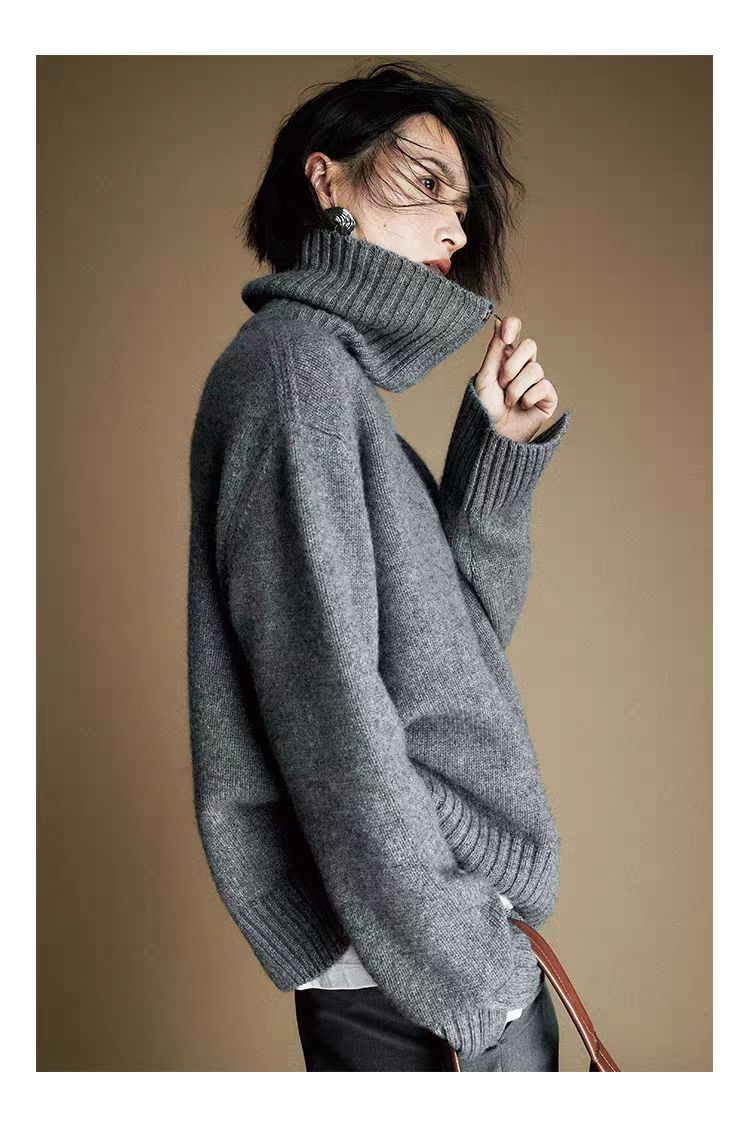 輪郭の形がゆったりしていて、だらだらしています。女性の毛が厚い高襟秋冬100セーターの大きいサイズの純色ニットの底のシャツです。