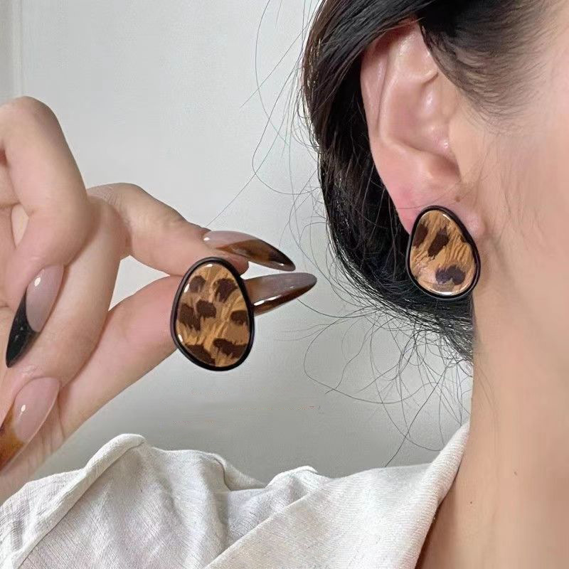 ディザトーンネット紅同タイプのヒョウ柄の幾何学的なピアス