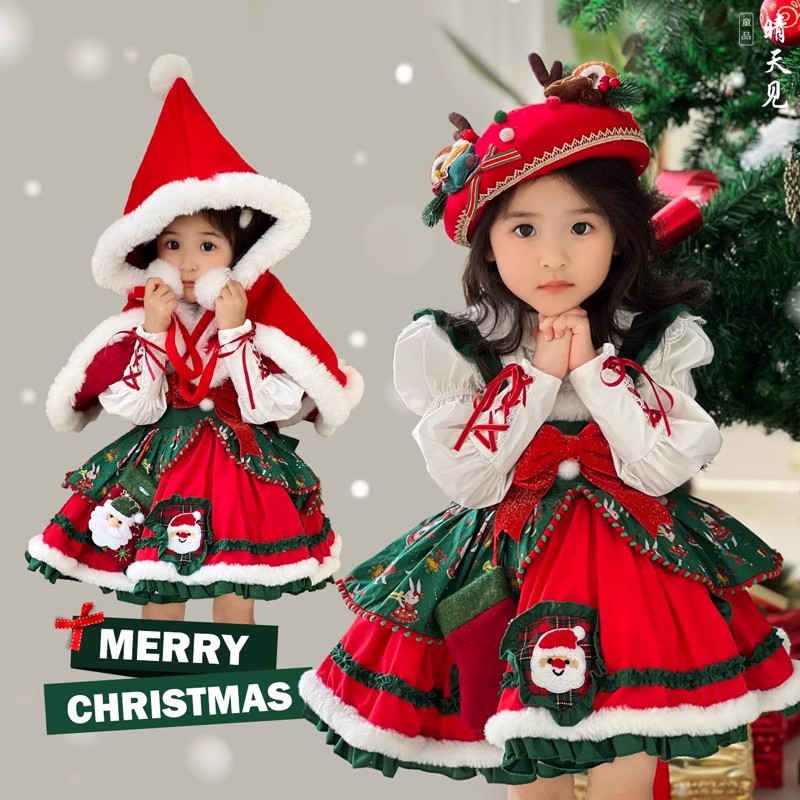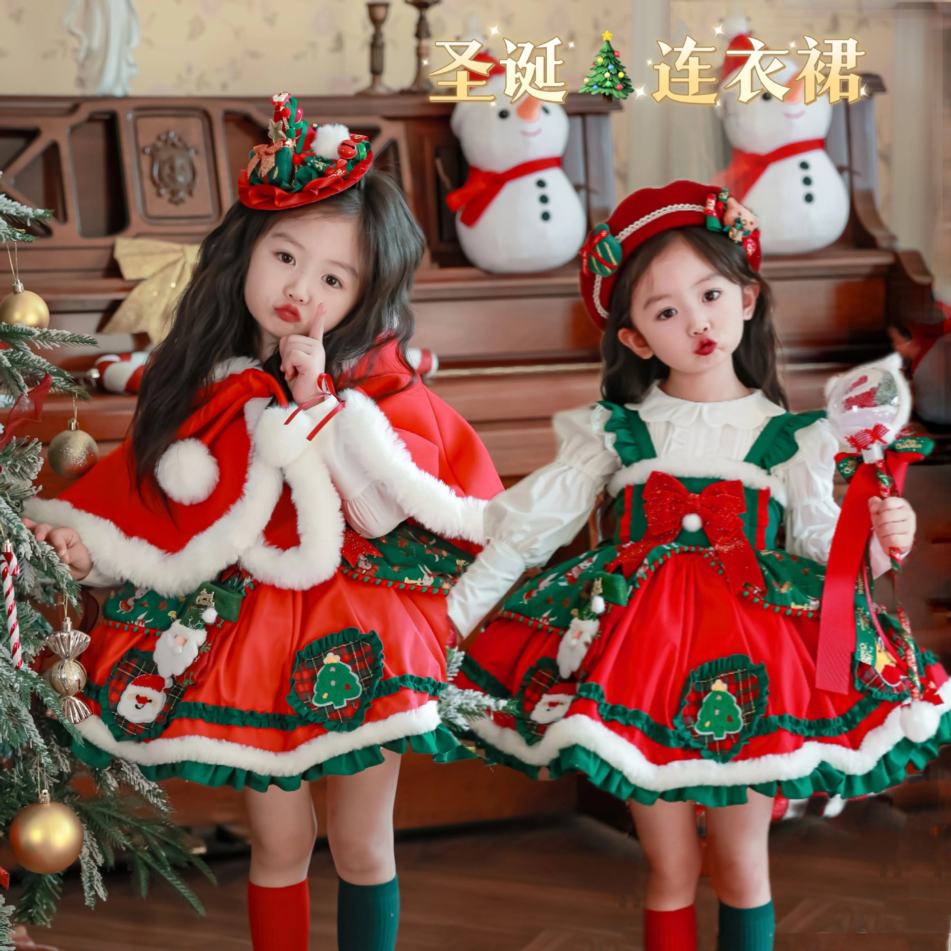 女童新款圣诞节穿搭儿童洛丽塔圣诞款主题服装斗篷套装冬季连衣裙