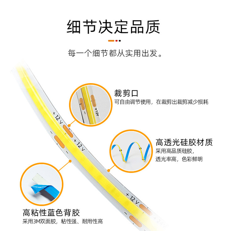 COB 8mm超亮b 2 b無光スポット5vリニアランプ家庭用キッチンキャビネットの道具はリニアにバックテープを持っています。