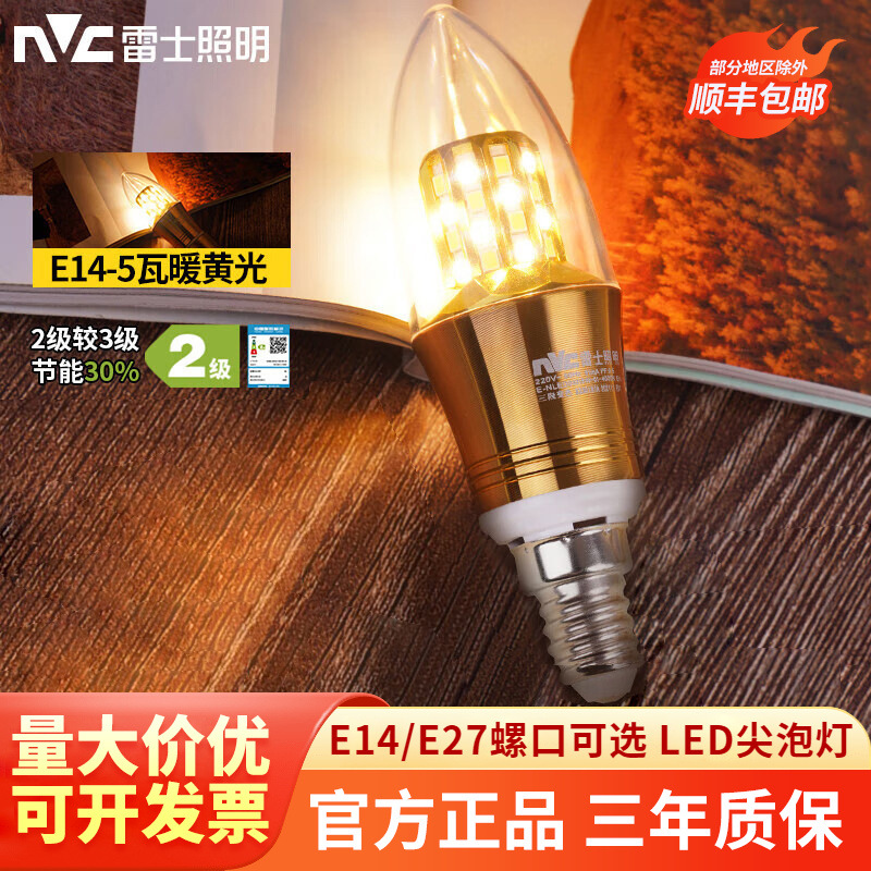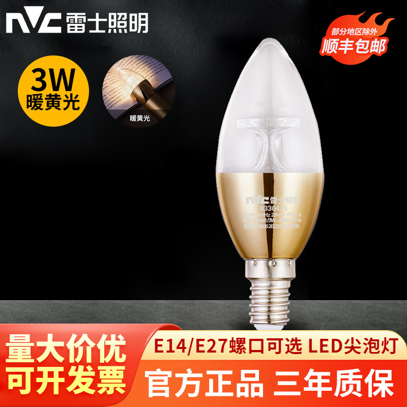 雷士照明led電球e27シャンデリア電球e14小ねじ口家庭用照明省エネ超明るいろうそくの先泡