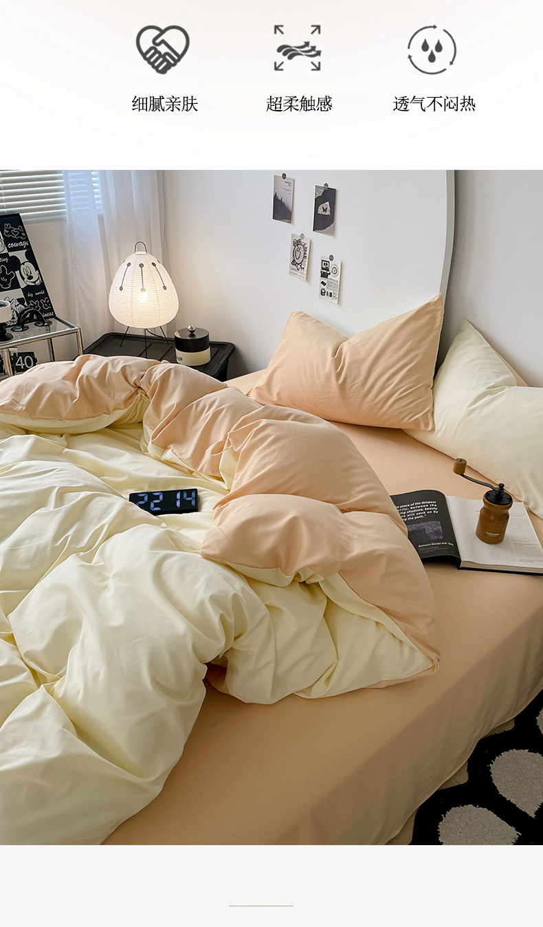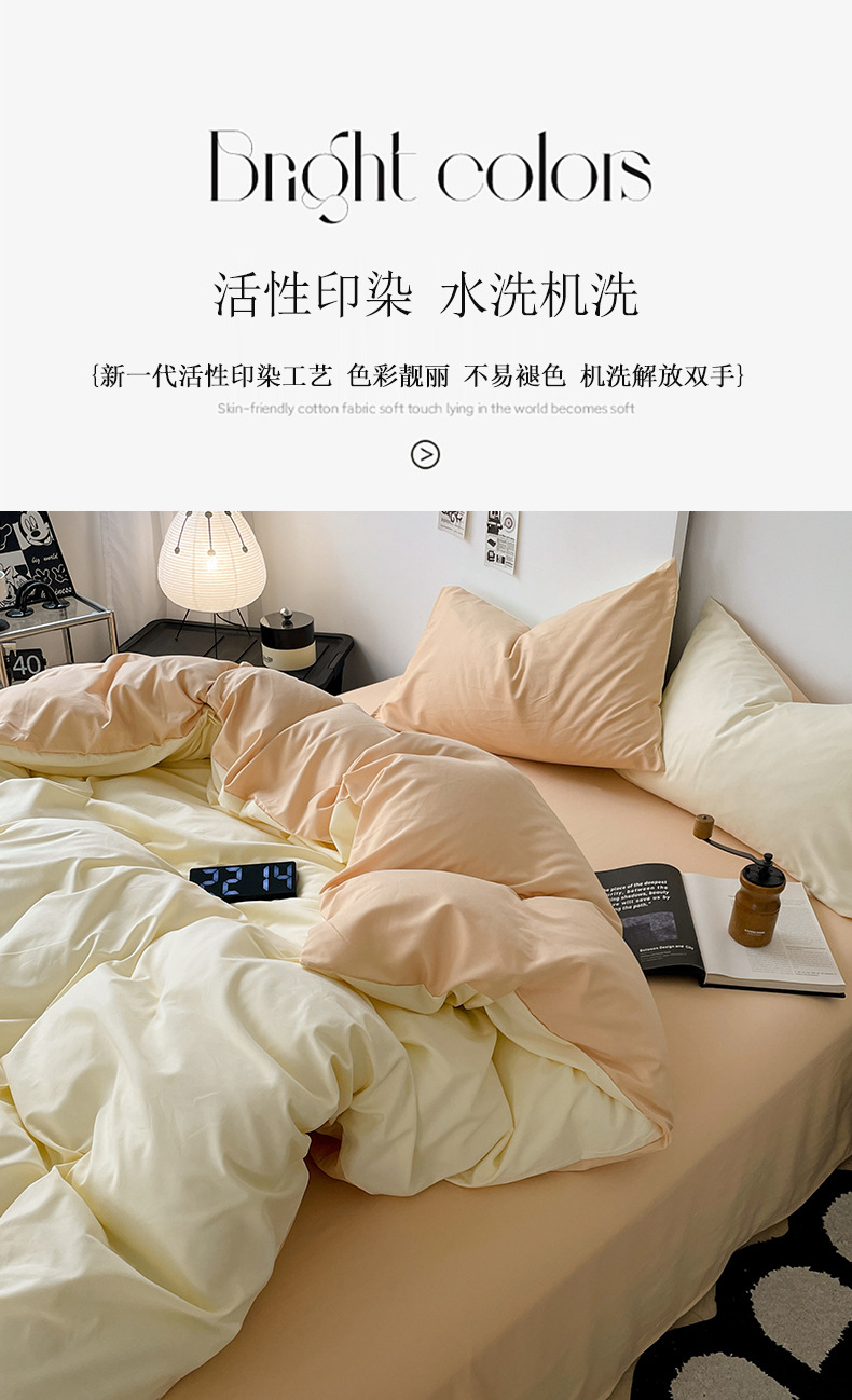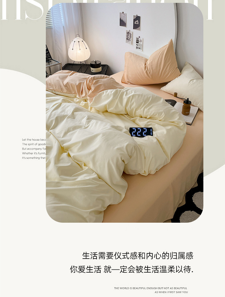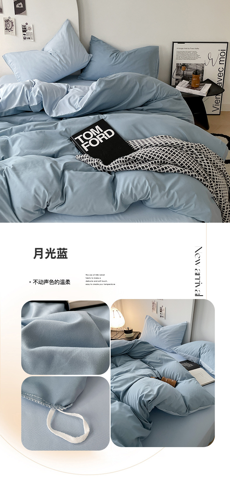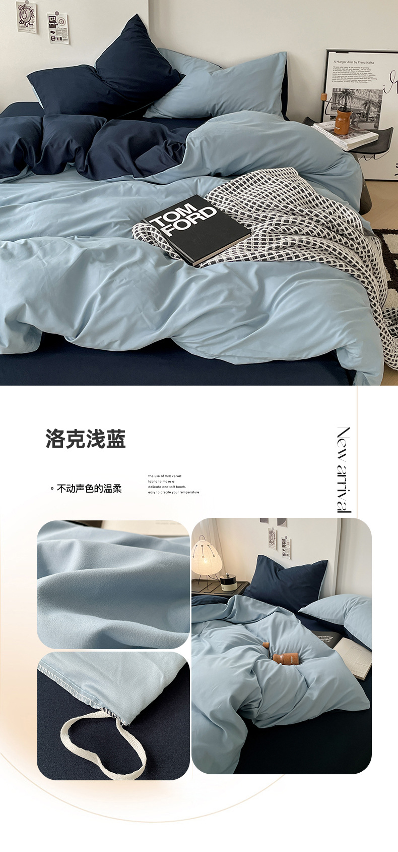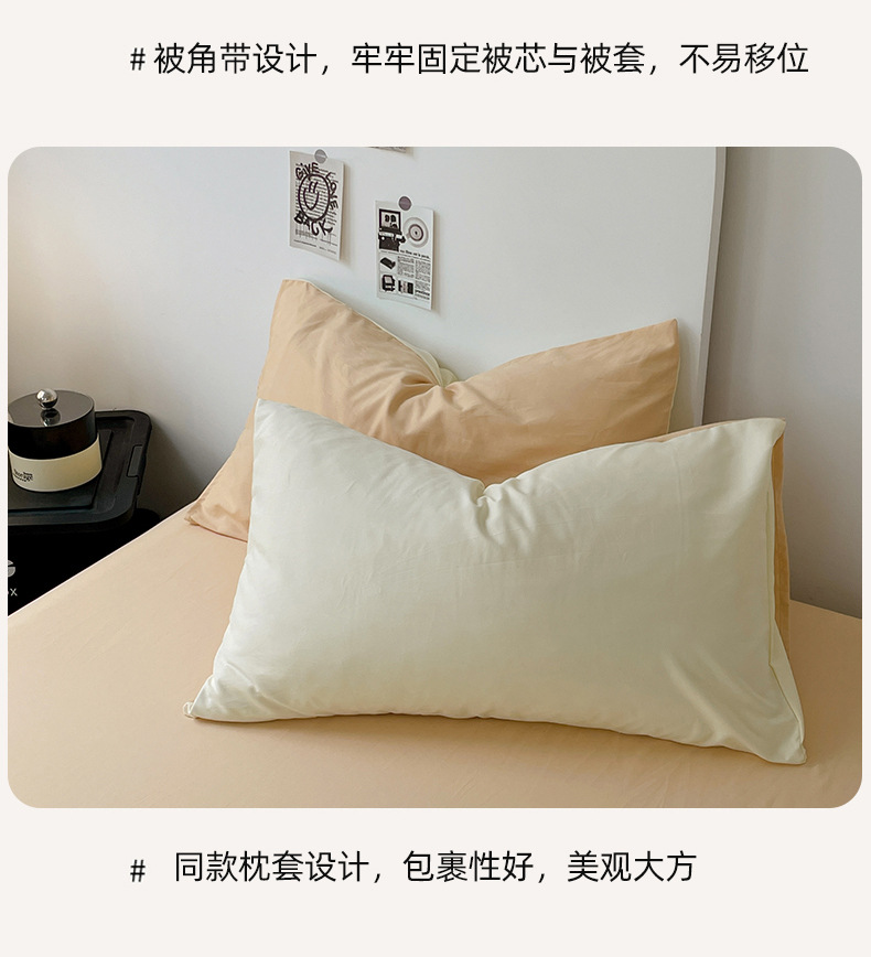 シンプルな純色の水洗い綿ベッドシーツ4点セットの寝具4点セット