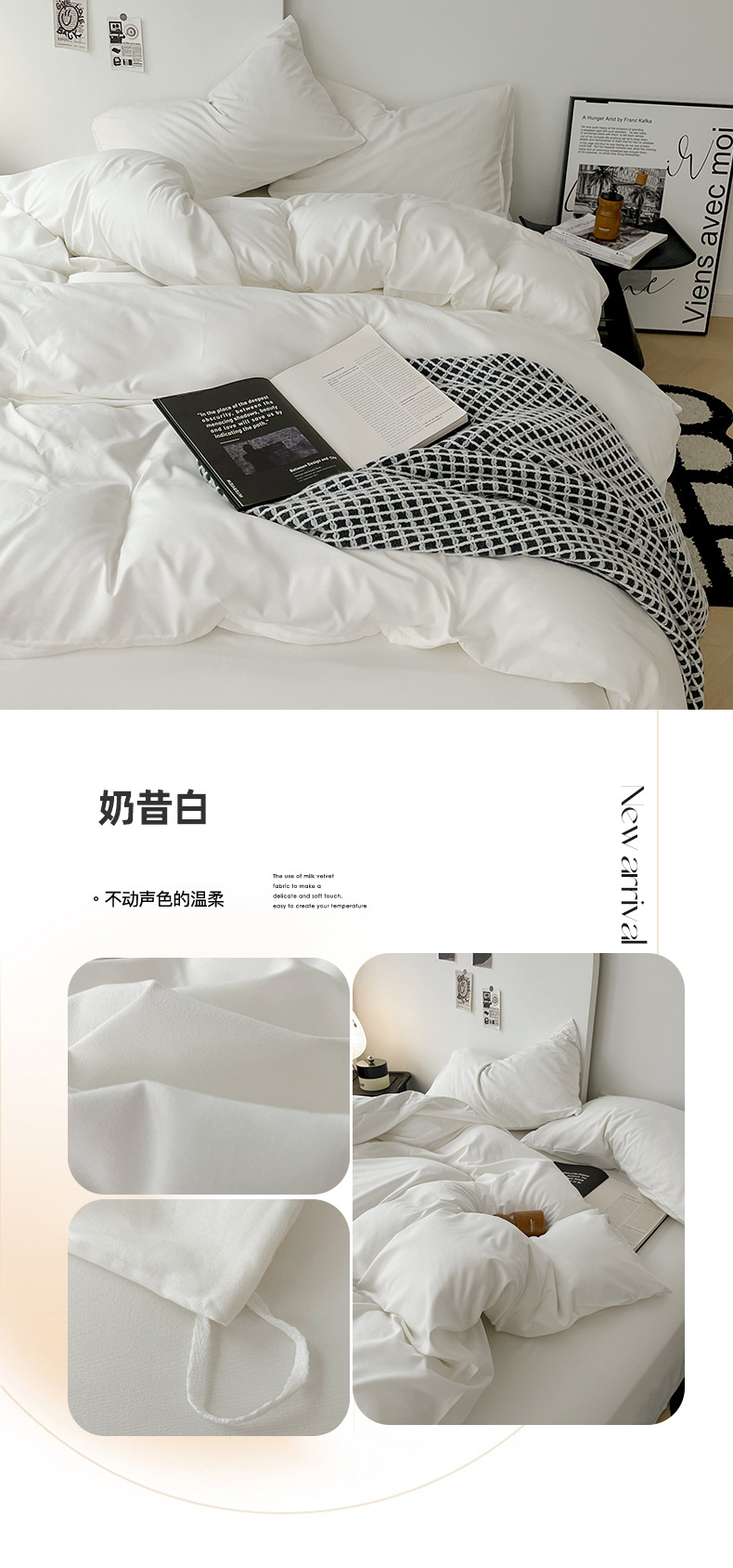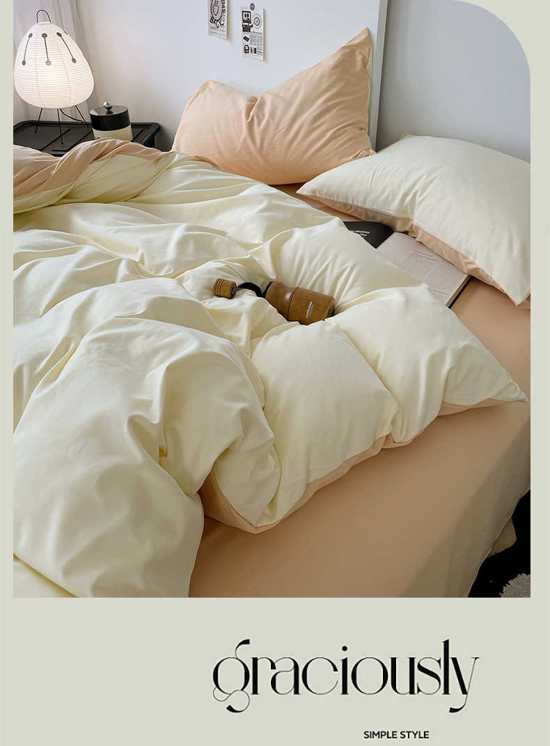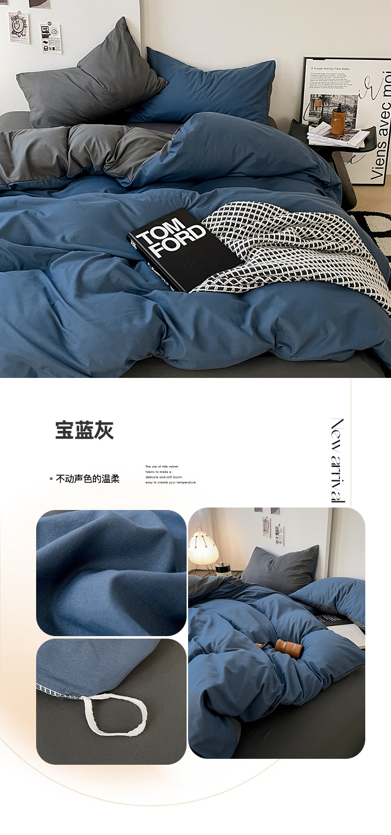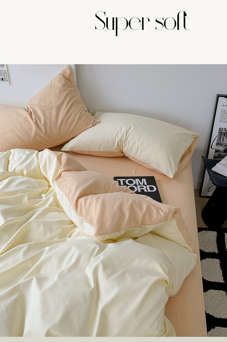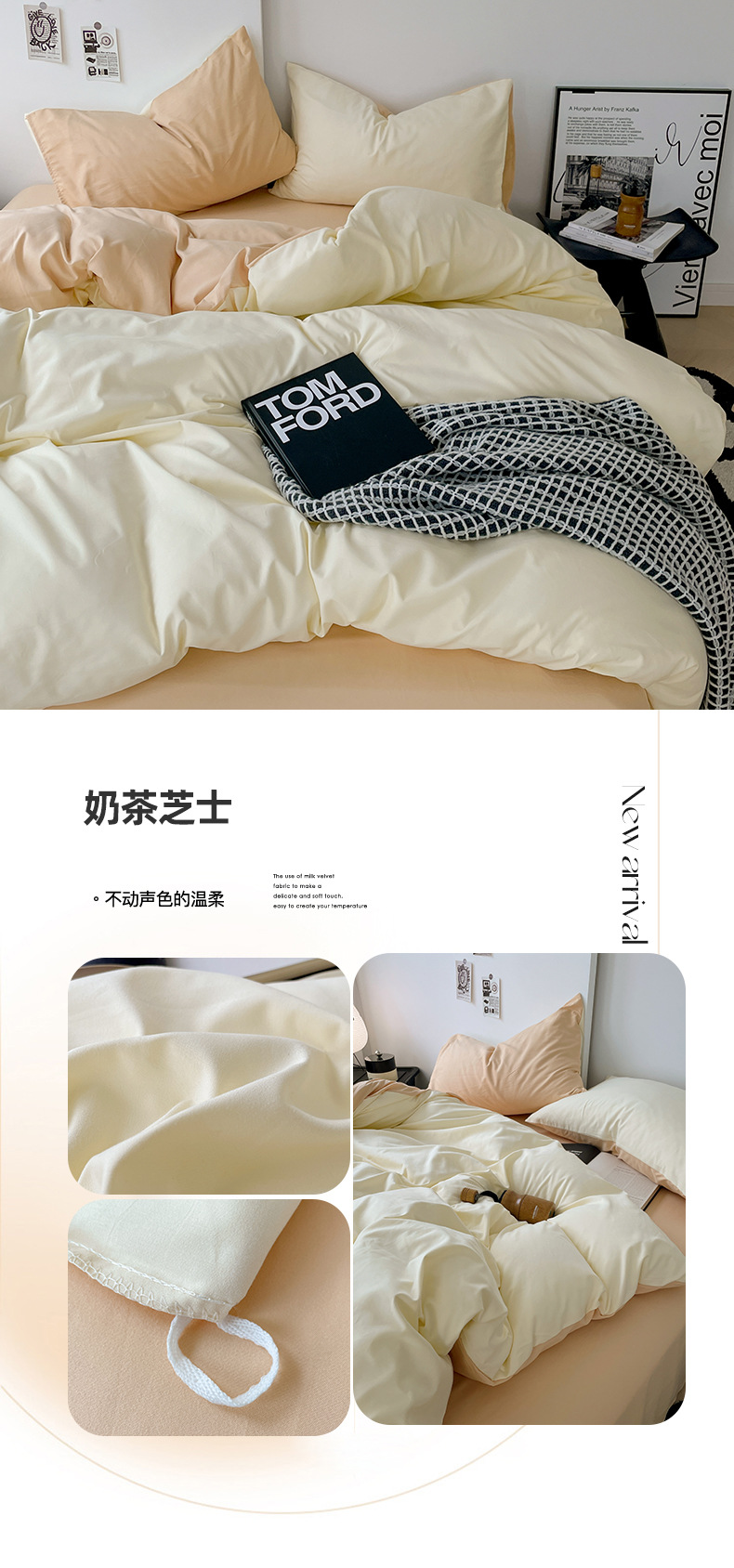 シンプルな純色の水洗い綿ベッドシーツ4点セットの寝具4点セット