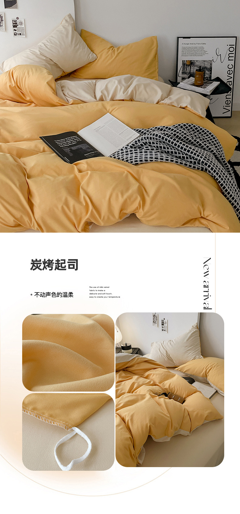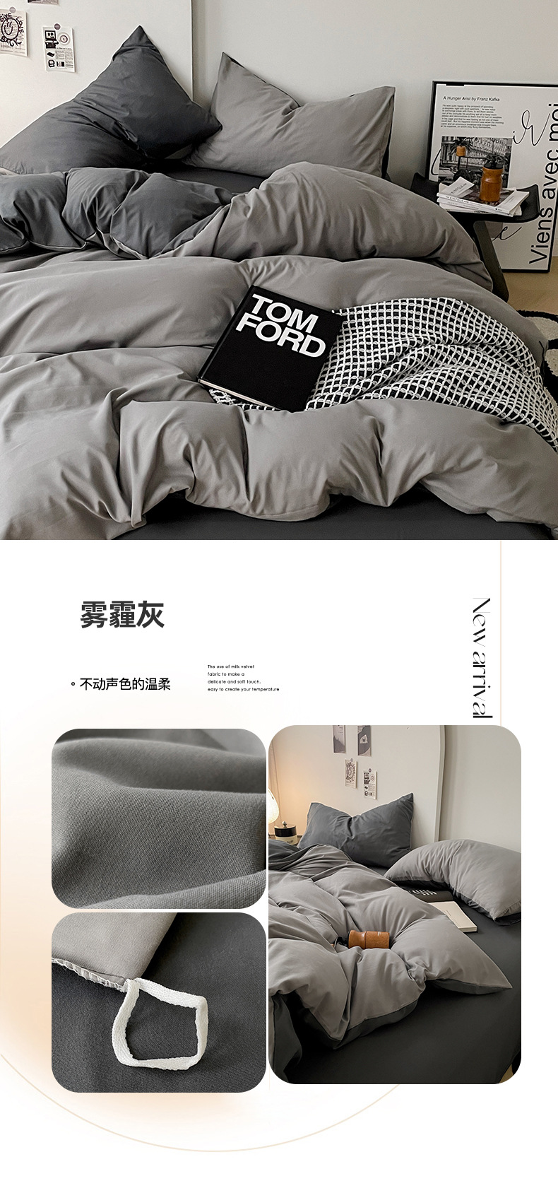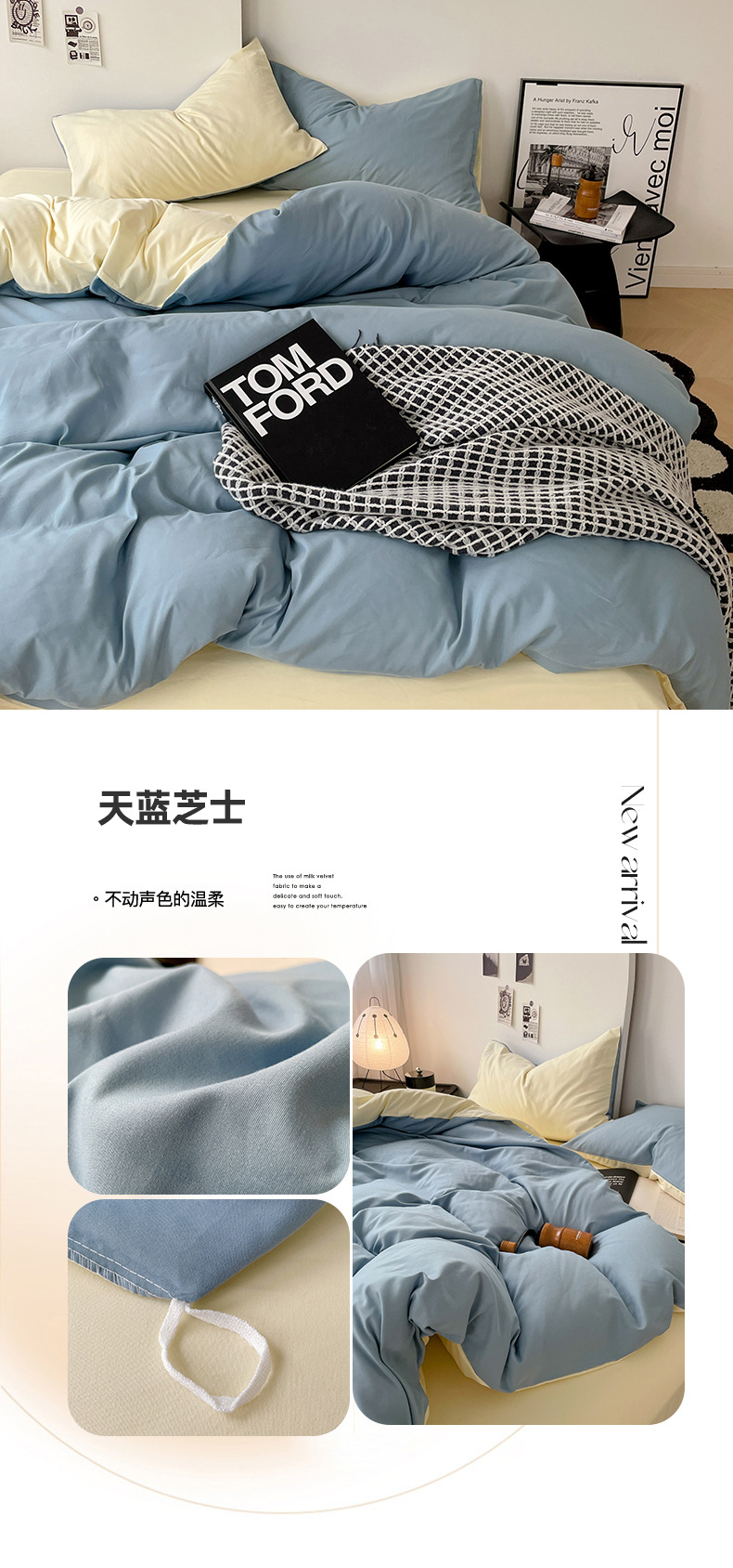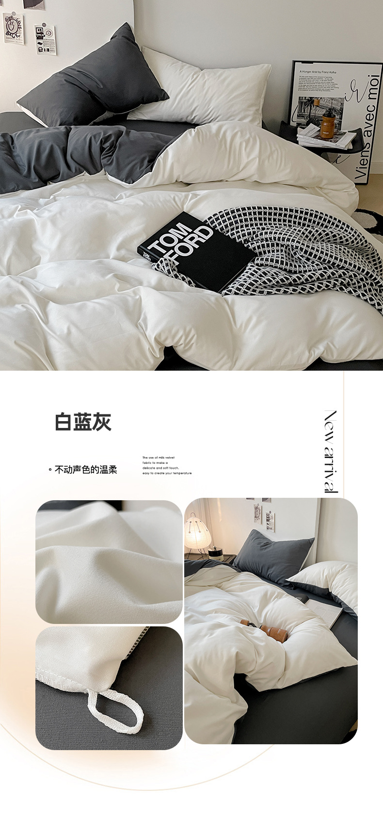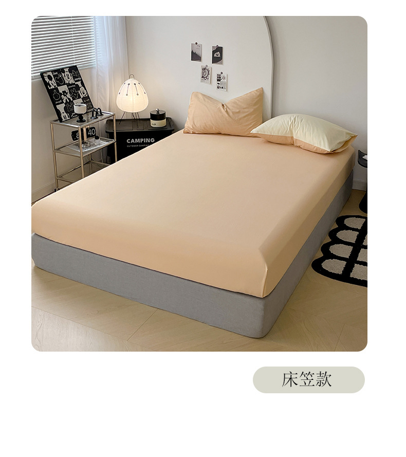 シンプルな純色の水洗い綿ベッドシーツ4点セットの寝具4点セット