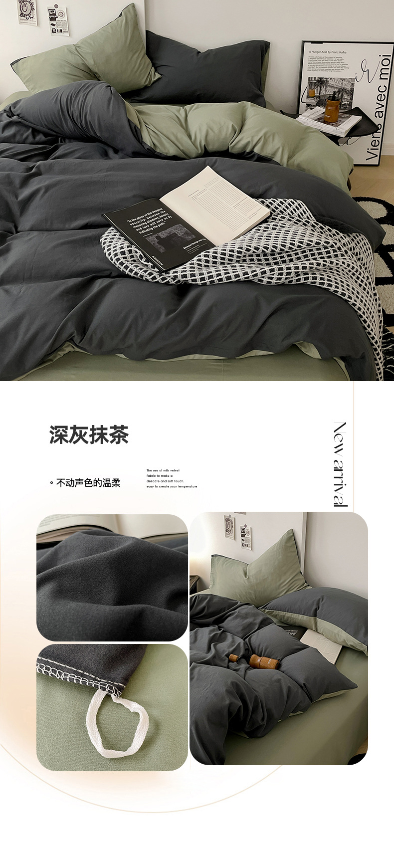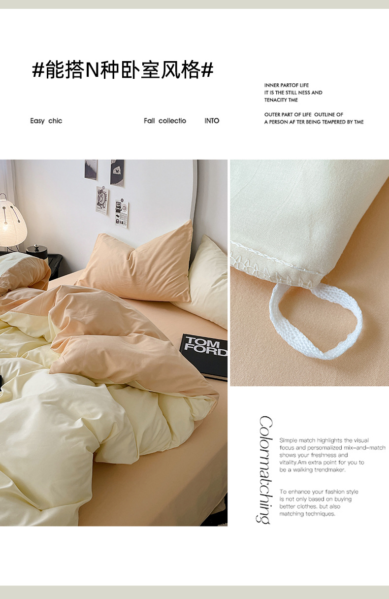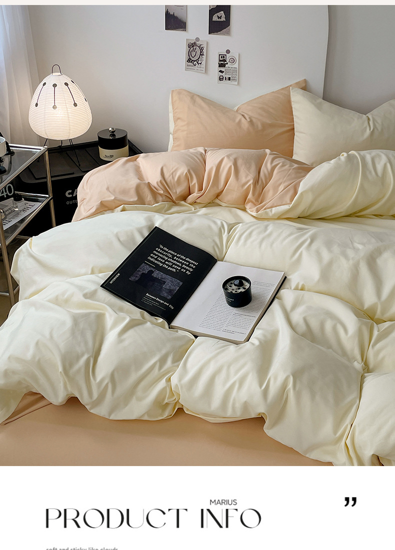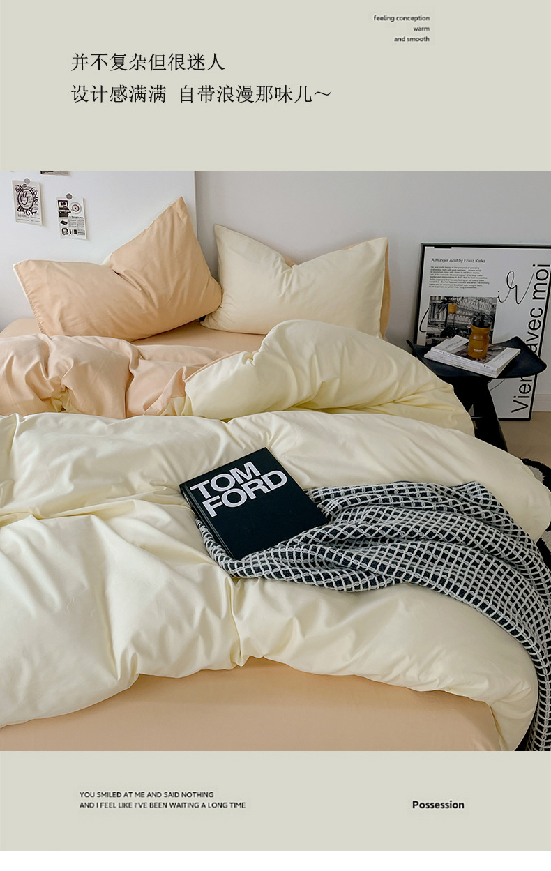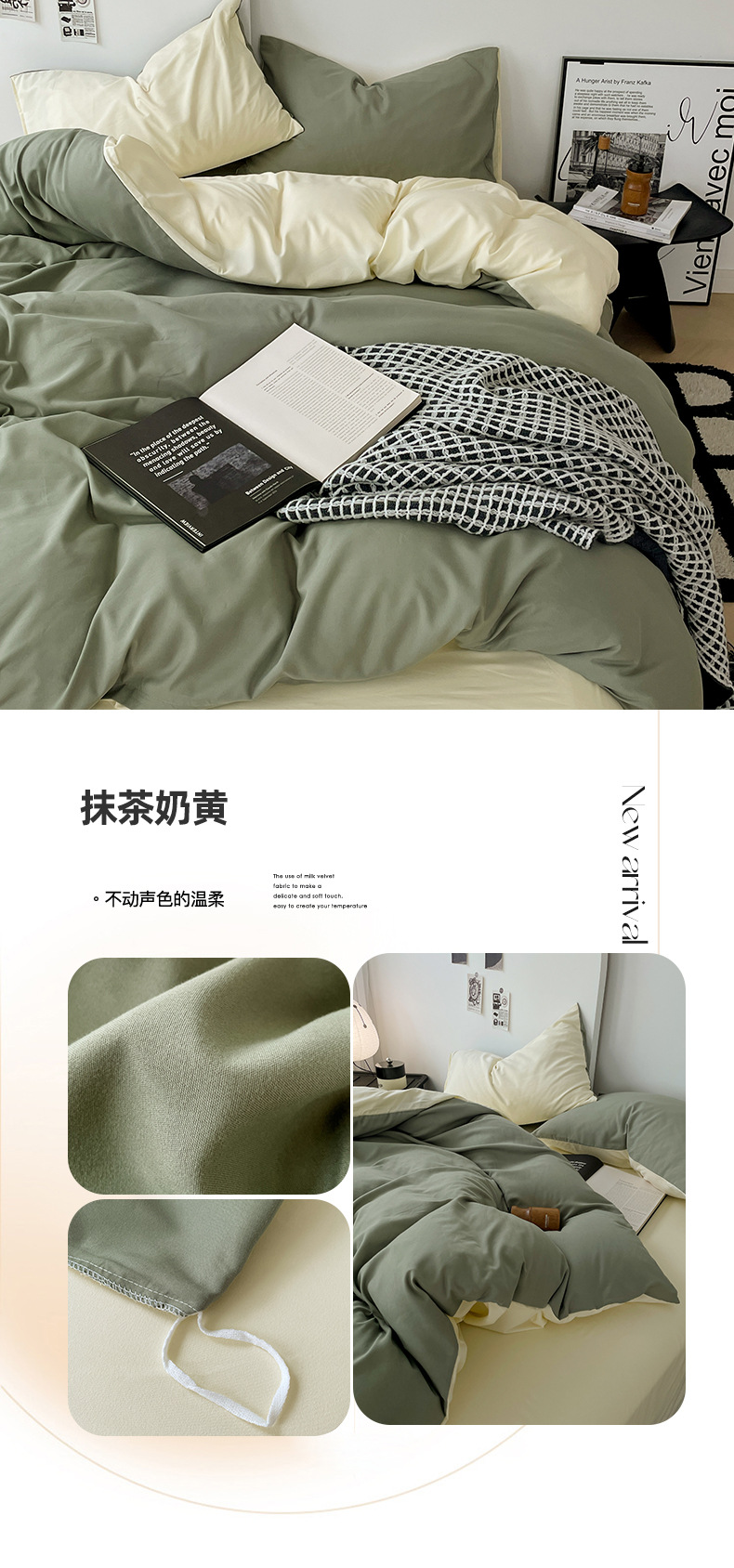 シンプルな純色の水洗い綿ベッドシーツ4点セットの寝具4点セット