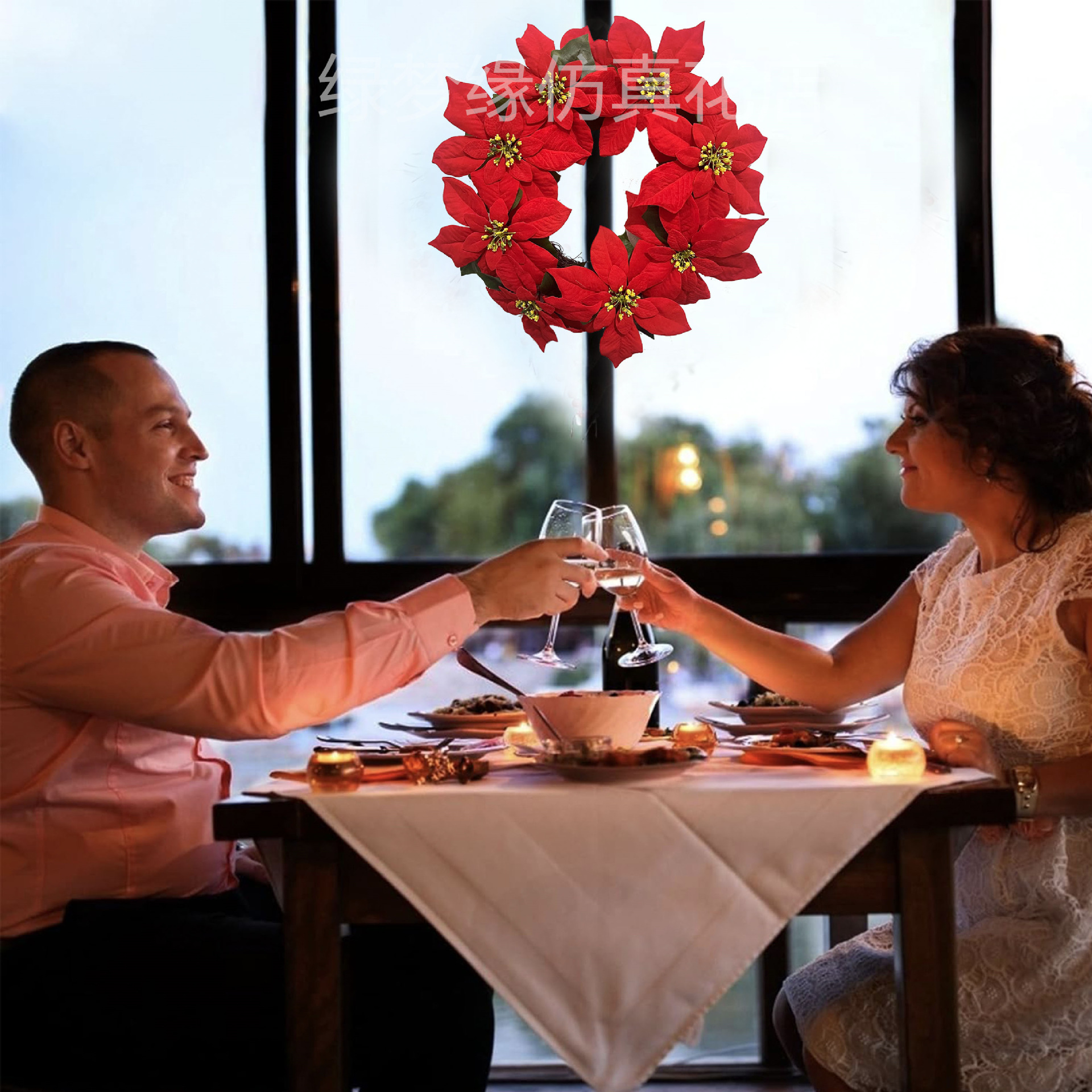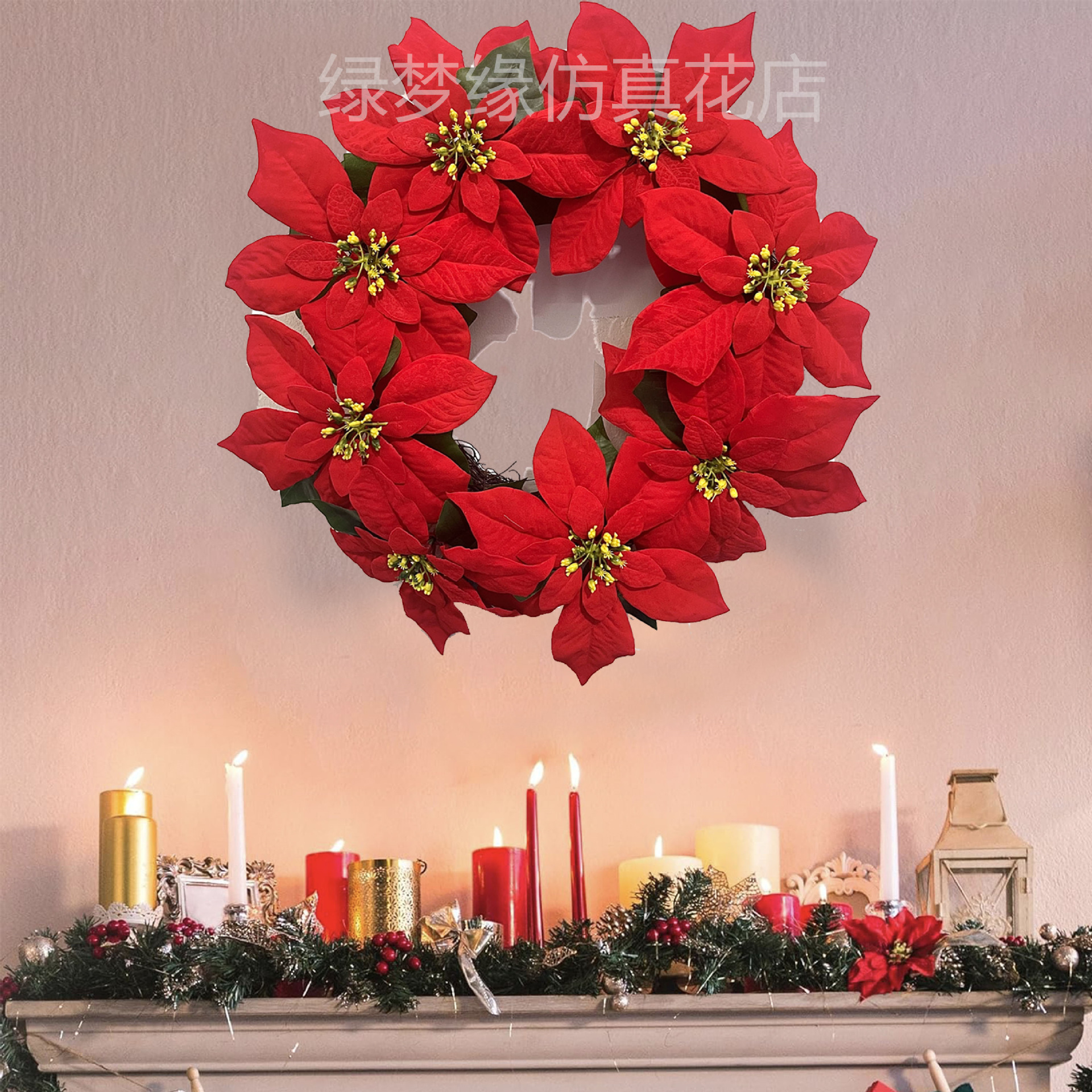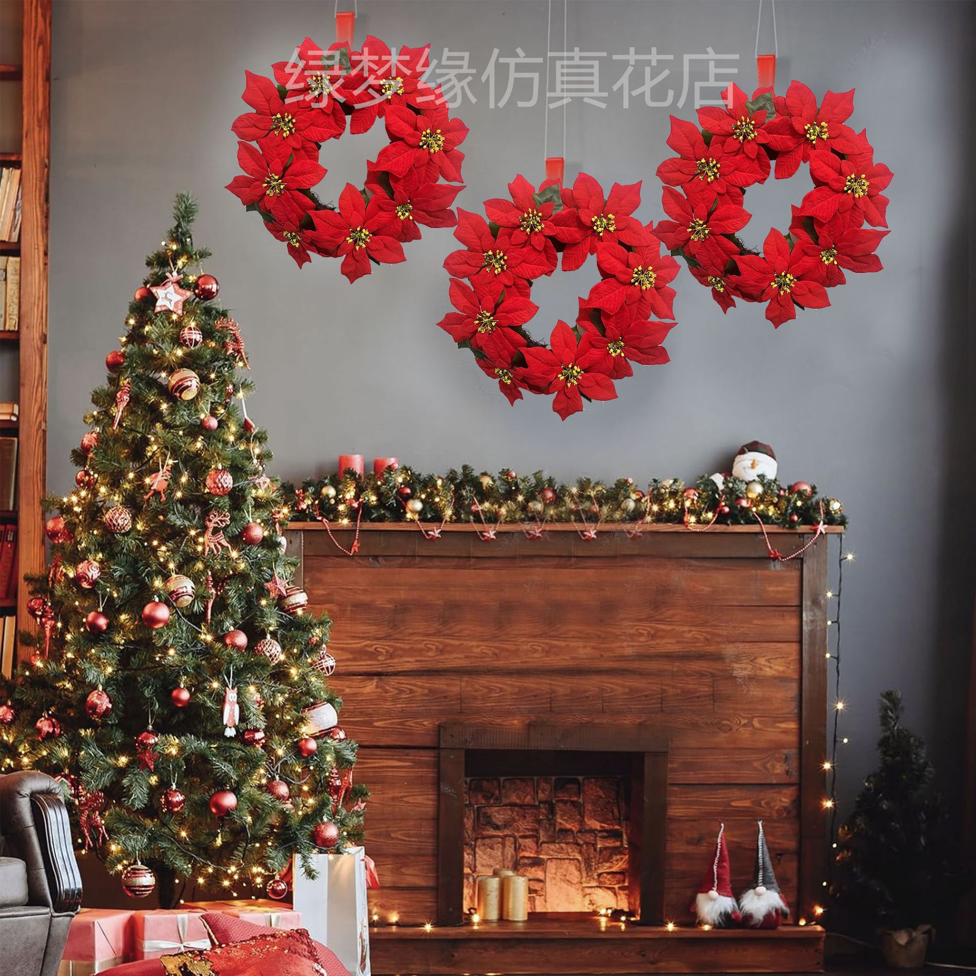 クロスボーダーのクリスマスのシミュレーションの一品の赤い花輪のクリスマスの花は束の祝日の屋外の扉を室内の暖炉の装飾に掛けます。