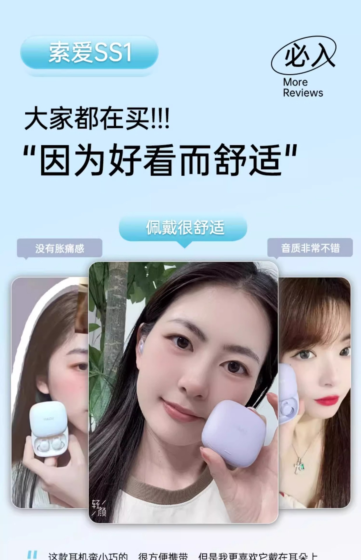 索愛SS-1 bluetoothイヤホン入耳式真無線高音質ノイズリダクション睡眠専用の長い持続時間をかけても痛くないです。