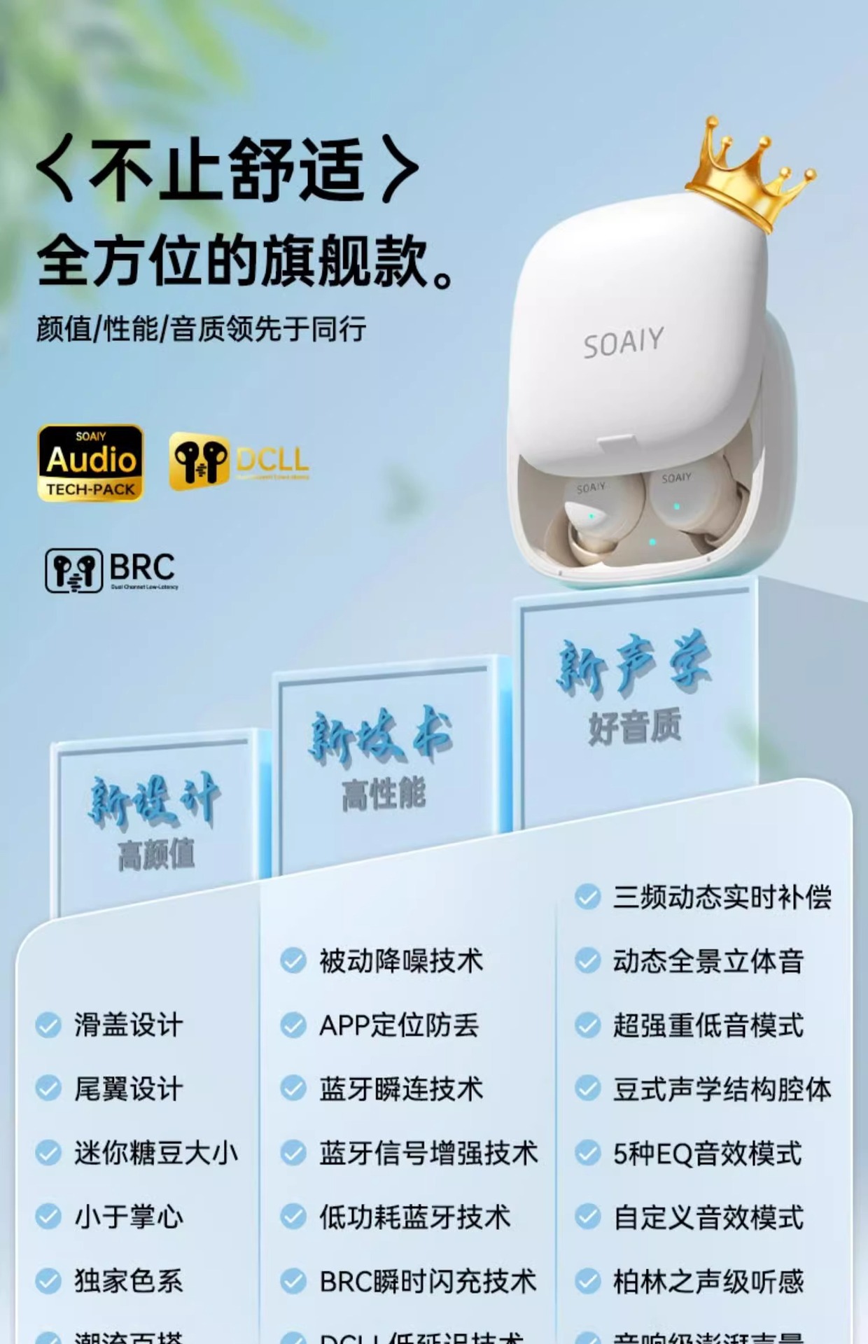 索愛S5真無線bluetoothイヤホン運動半入耳式イヤホン高音質適用ファーウェイアップル