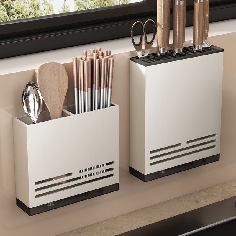 白いナイフホルダー穴なし壁掛け式刃物収納キッチン箸筒ケージホルダー多機能家庭用包丁ホルダー
