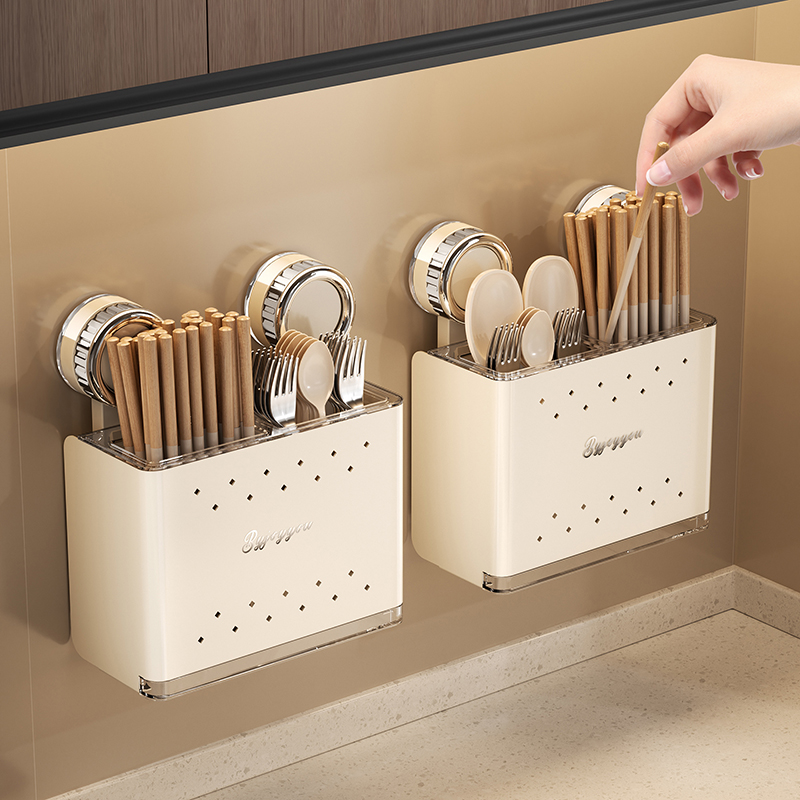 创意吸盘壁挂筷子筒多功能免打孔强力上墙沥水通风厨房家用收纳盒