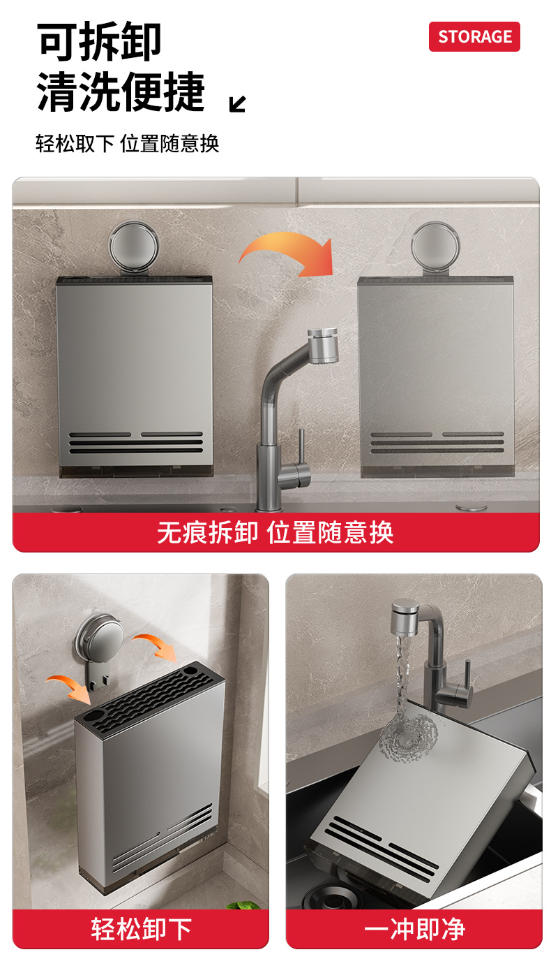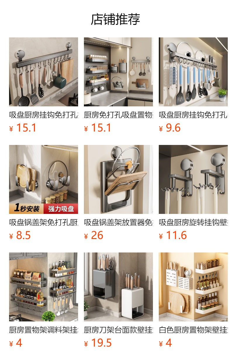 吸盤厨房物置棚穴なし多機能家庭用壁掛け式調味料箸筒刃物棚用品収納棚