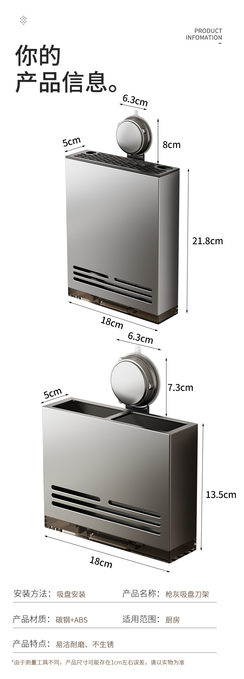 キッチンナイフホルダー、卓上タイプ、壁掛け式、ガンメタルグレー、収納ラック、家庭用多機能ナイフ収納、包丁ホルダー、包丁収納ラック
