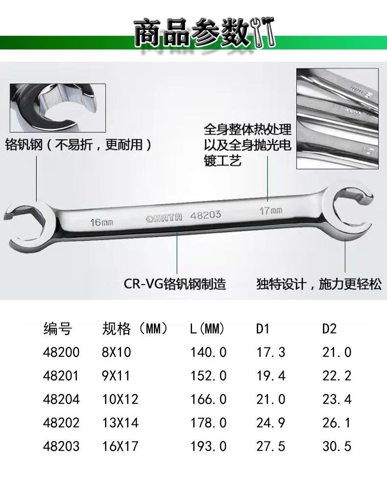 世達工具全研磨油管レンチ両頭バヨネット油管レンチ自動車修理48200-48204