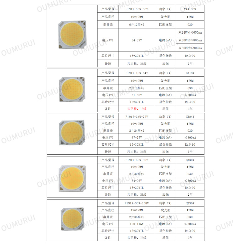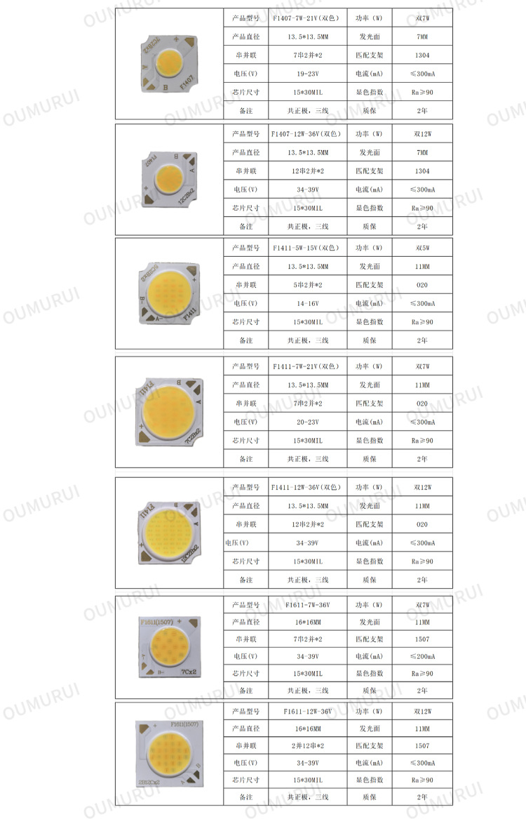 F1407-7W-21V(2色),F1407-12W-36V(2色),F1411-5W-15V(2色),F1411-7W-21V(2色),F1411-12W-36V(2色),F1611-7W-36V(2色),F1611-12W-36V(2色),F1917-24W-36W-36V(2色),F1917-18W-54V(2色),F1917-24W-72V(2色),F1917-30W-90V(2色),F1917-36W-108V(2色),F1611-4色RGBW(DC24V-8W),2012-4色RGBW(DC24V-8W),F1611 5色RGBWS(21V-5-36W),F1611-5色RGBWS(21V-5-36W)マトリクス配置,1917-5色RGBWS(36V-5-57W)