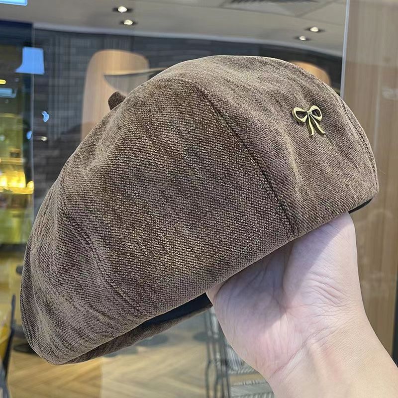 韓国版の新型蝶結びの金属ベレー帽の女性は日本のレトロで甘いです。