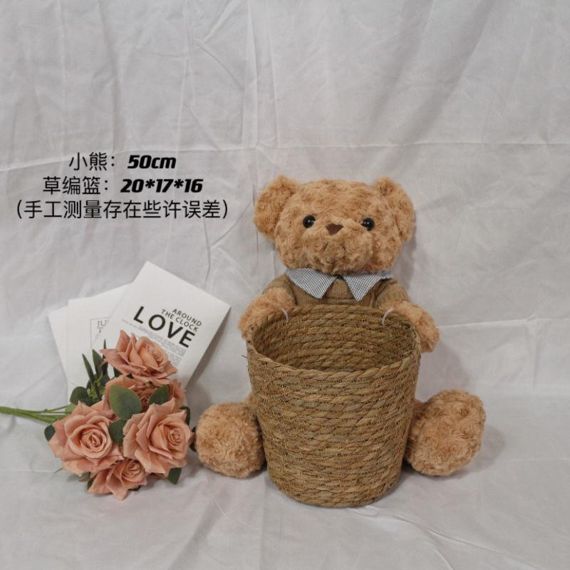栗熊抱っこ桶編み花かご植物鉢植え草編み花鉢花屋祝日起爆草編み花かご