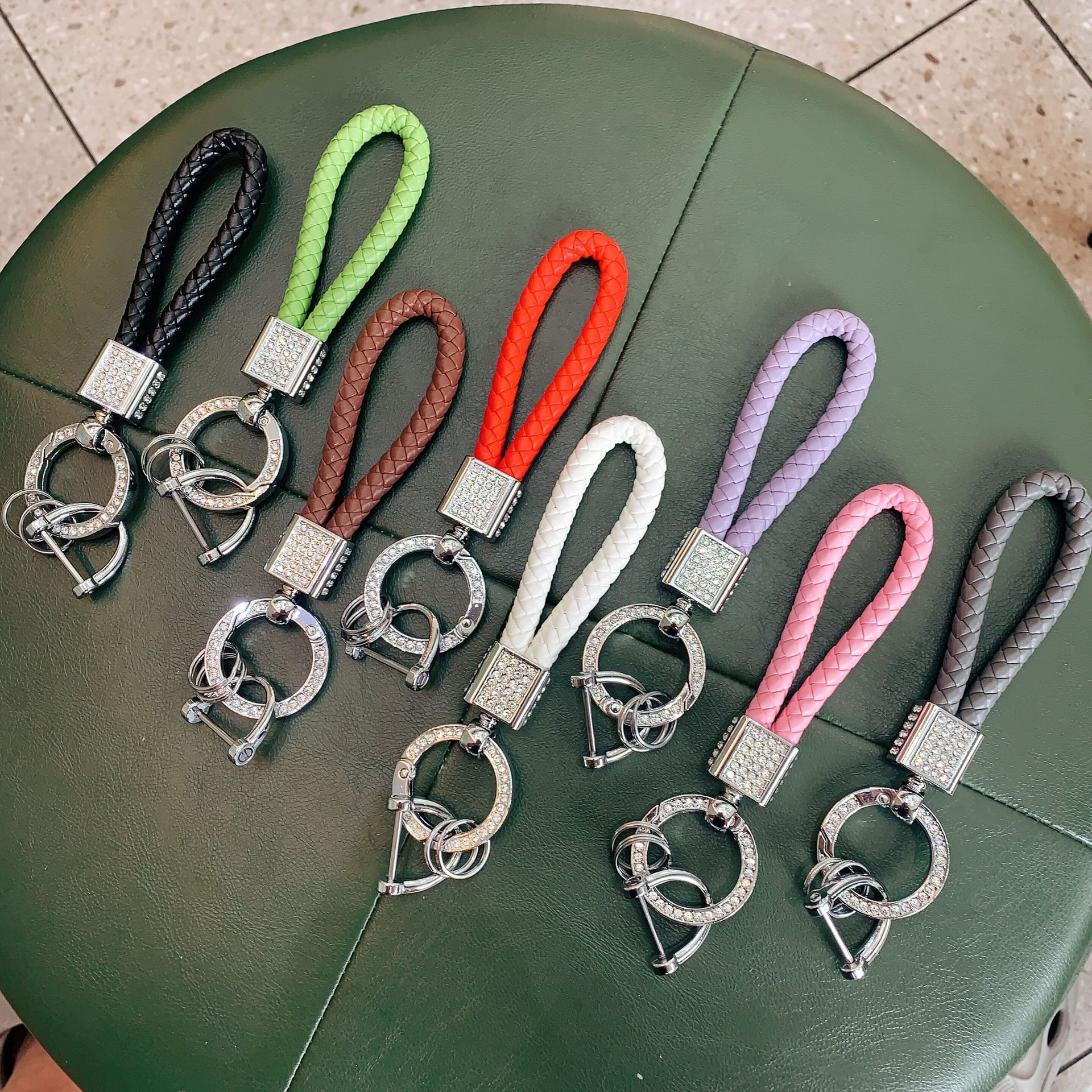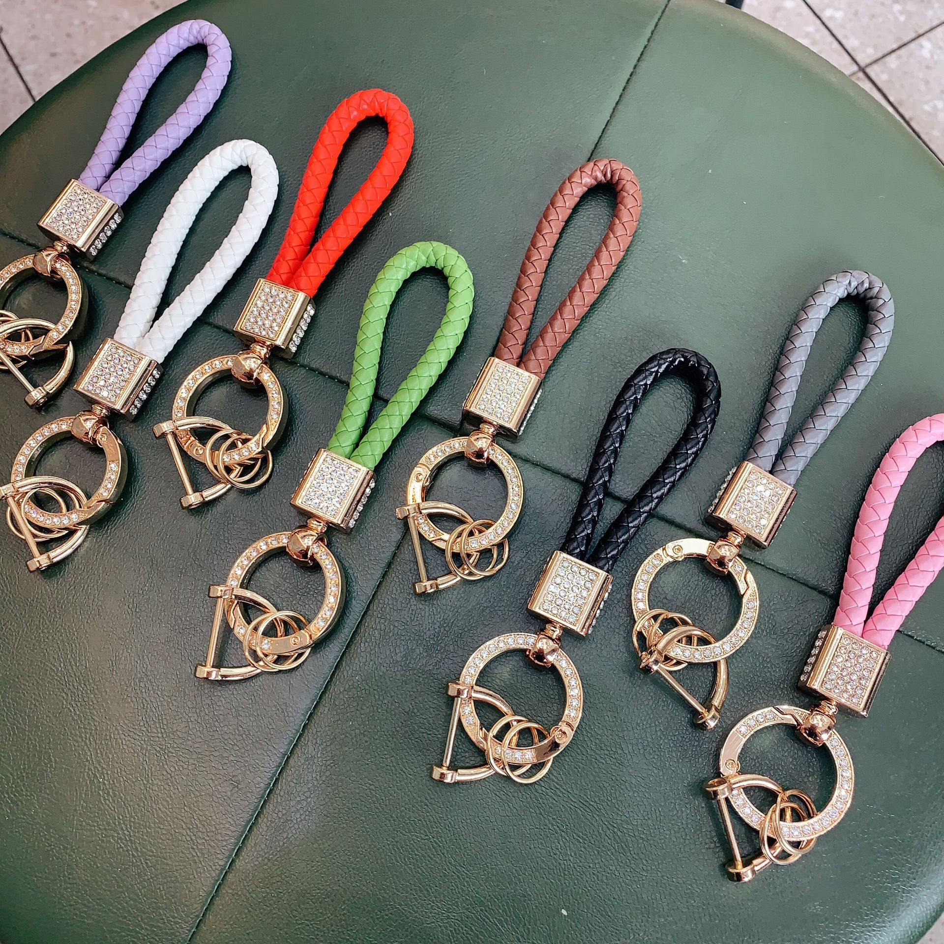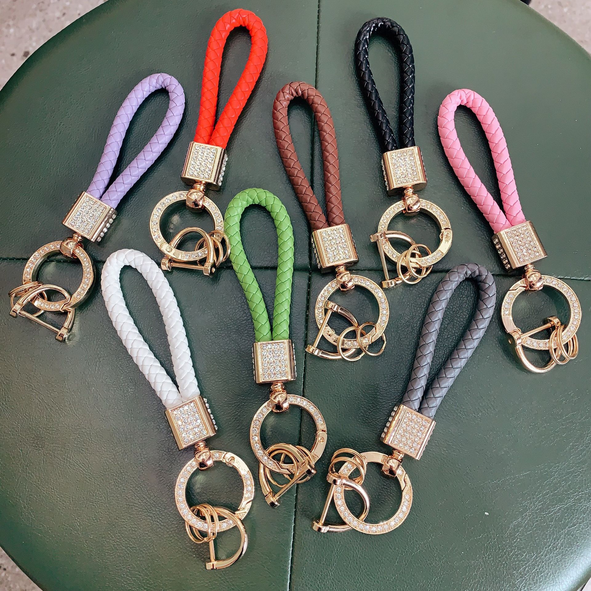 韓国のライト高級手織りロープ車のキーホルダーペンダントダイヤモンドキーホルダーオートバイのキーアクセサリー小さなギフト