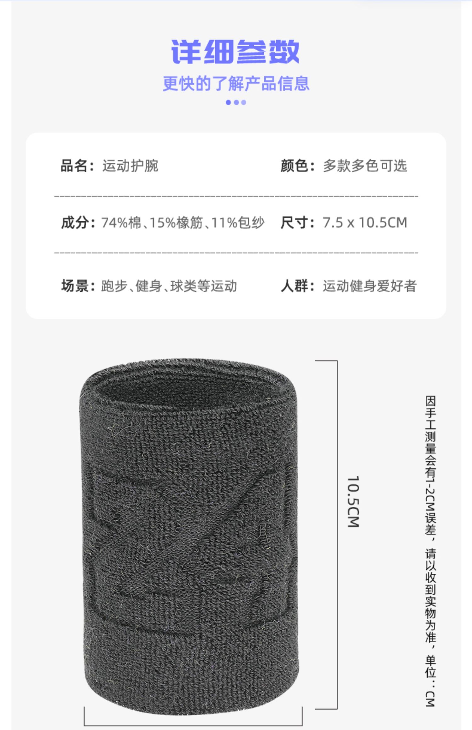 加厚运动护腕男扭伤手腕透气篮球羽毛球健身护手腕套擦汗巾吸汗巾