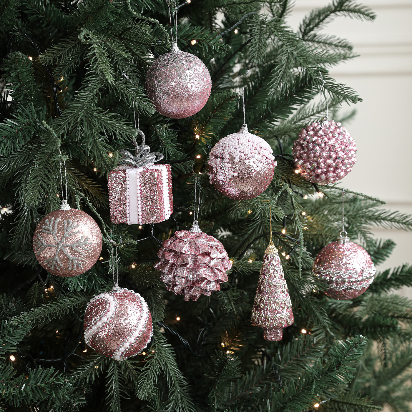 新款粉色泡沫圣诞球异性挂件亮光闪粉粘粉圣诞树吊球装饰挂饰布置