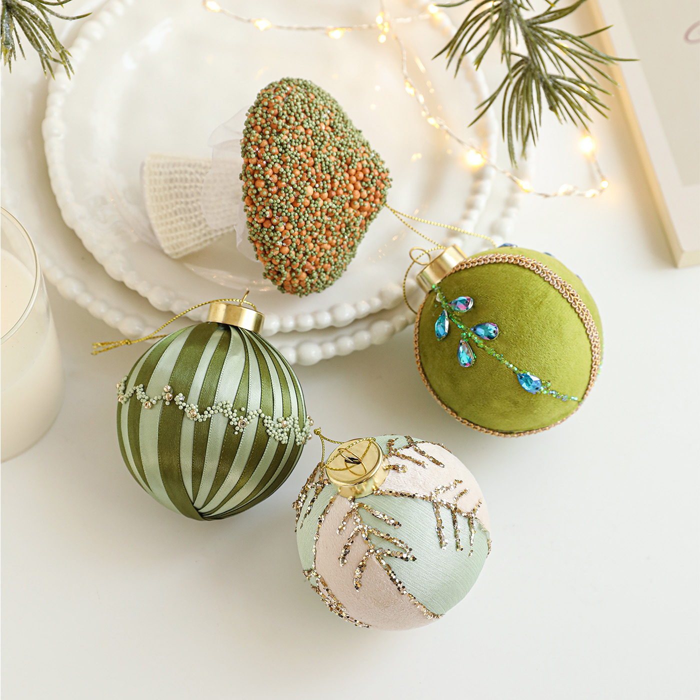 跨境新品8CM圣诞球包布粘粉球蘑菇泡沫挂件异性吊球圣诞树装饰