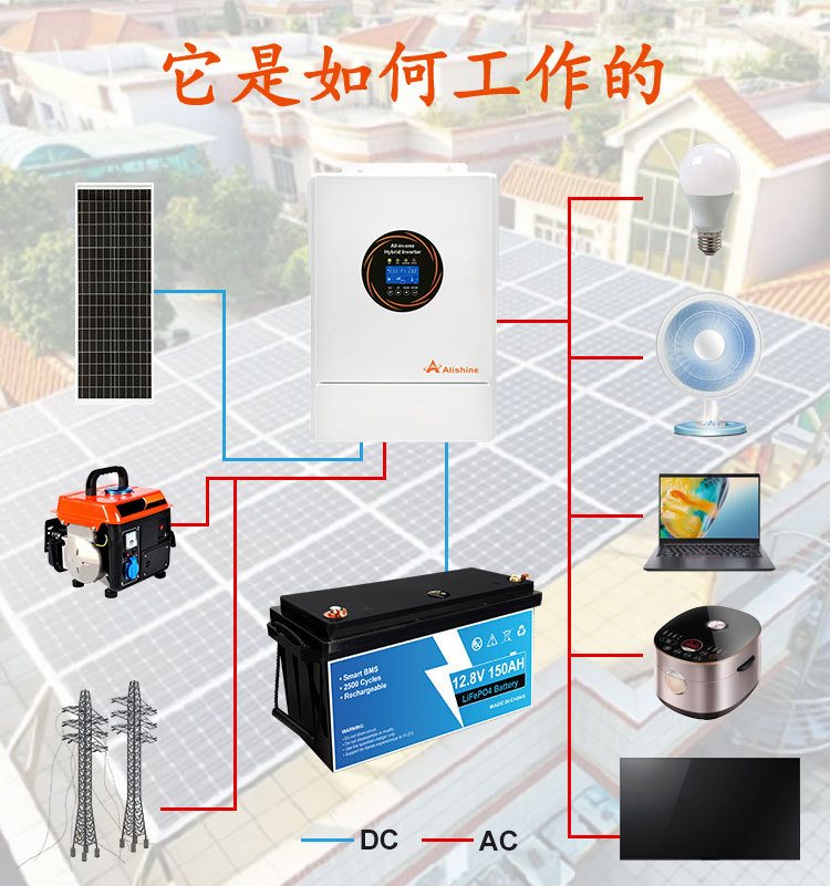 太陽光発電システム家庭用及びオフグリッドups電源電池インバータ一体型太陽光発電貯蔵電力供給システム