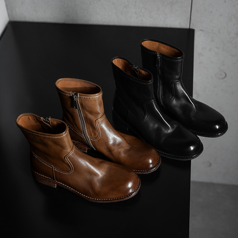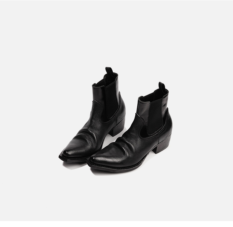 牛革バージョン〜プリーツスクエアトゥマーティンブーツ レディース 太ヒール サイドジッパー チェルシーブーツ レディース ショートブーツ 英国風
