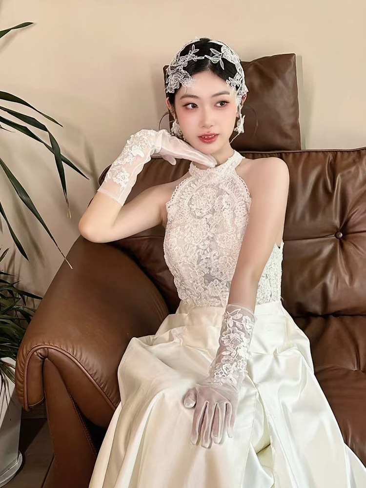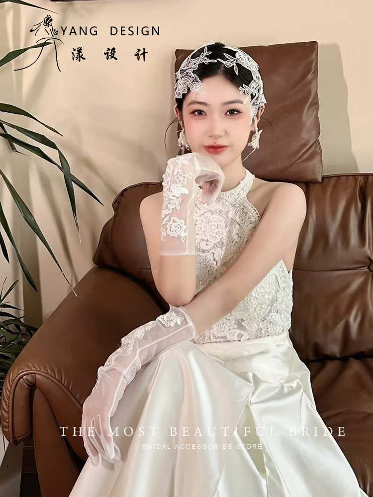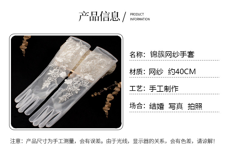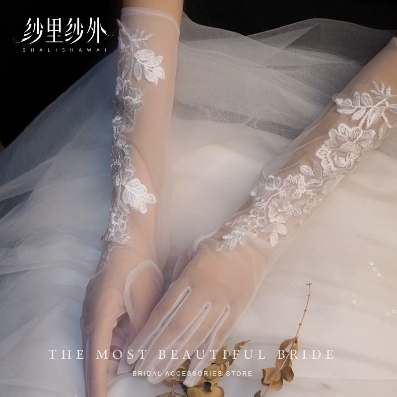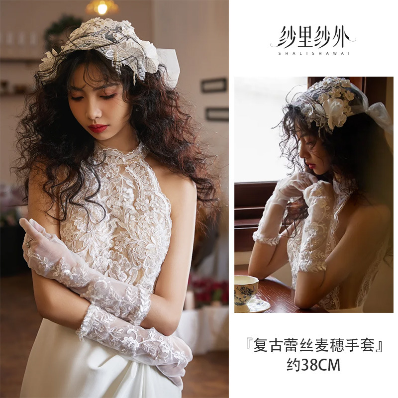 ウェディング手袋花嫁フランスレース花ネット糸薄いシンプルで優雅な超仙レトロ手袋森系アクセサリー