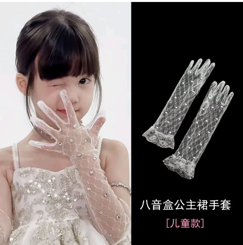 レース手袋白いメッシュ花ドレス花嫁结婚赤诞生日パーティー雰囲気プリンセス写真手袖