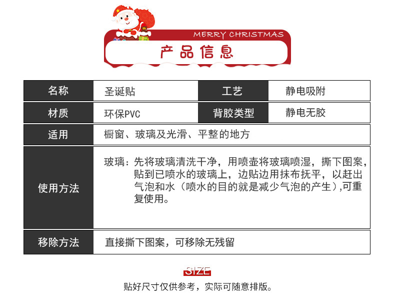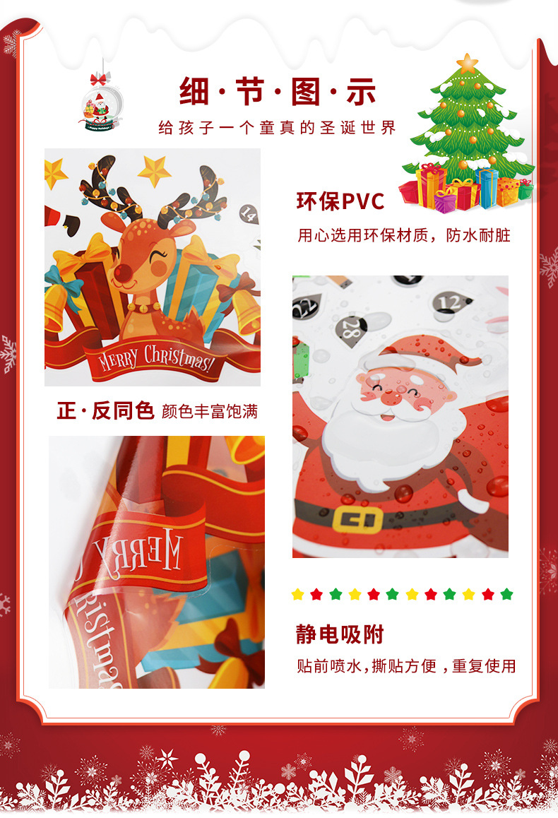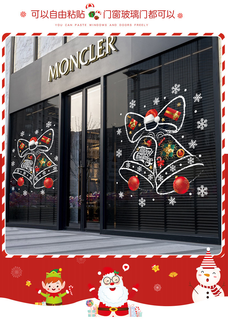 2026圣诞节静电贴纸装饰商场场景氛围布置墙贴橱窗玻璃门窗花贴画