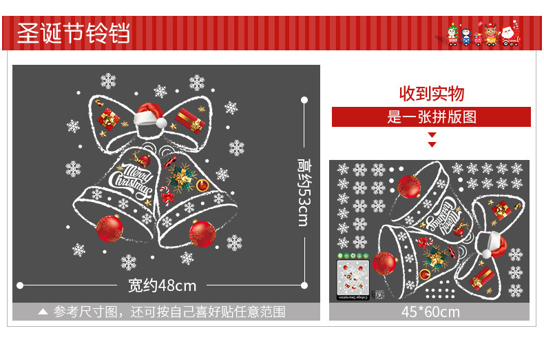 クリスマスベル ホリデーデコレーション 静電ガラスステッカー ショッピングモール ウィンドウデコレーション 雰囲気演出 シーンレイアウトステッカー クロスボーダー